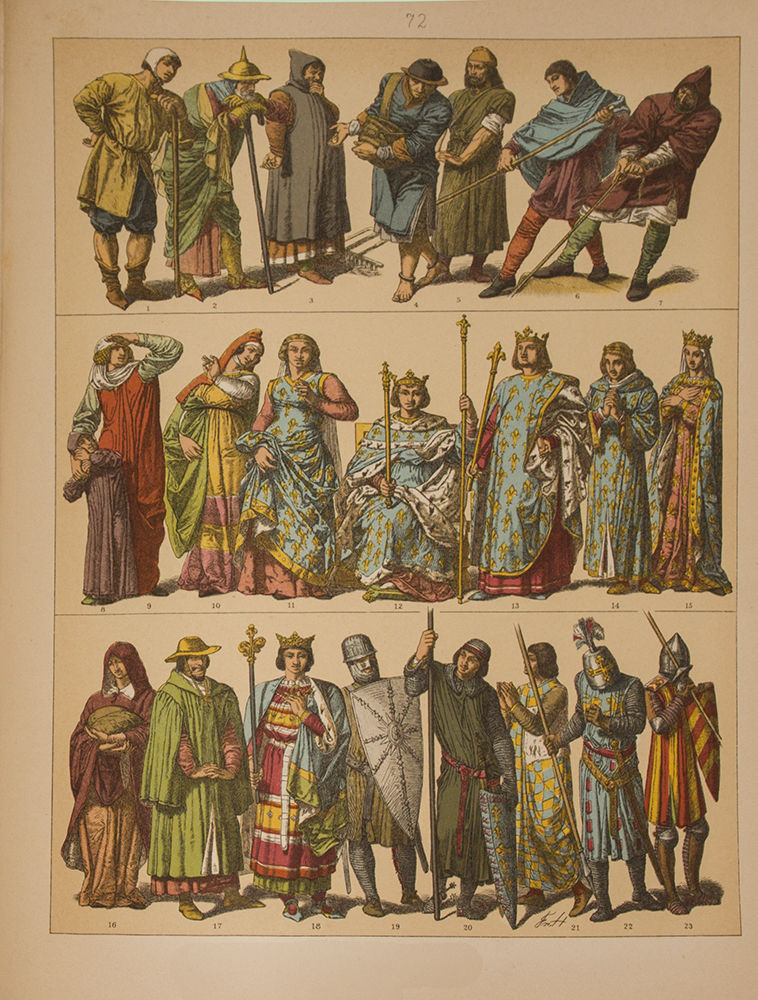 Т. 1. - Пер. с нем. С.Л. Клячко. - [4], II, [2], 224 с.,120 л. табл. (ил.): ил; Т. 2. - Пер. с нем. Е. Щепотьева. - [6], 240 с., 120 л. табл. (ил.): ил.; 30х24 см. В роскошном коленкоровом издательском переплете с полихромным тиснением по передним крышкам и корешкам. Тройной золотой обрез. 240 листов многофигурных таблиц: костюмы различных народов, сословий (с разделением на женские, мужские и детские), бытовая утварь (инструменты, посуда, мебель, предметы культа), военные облачения, боевые машины и оружие. Многочисленные иллюстрации в тексте. Фундаментальный труд немецкого историка и этнографа Фридриха Готтенрота (1840-1917). Содержит сведения по истории моды, ремесел (в том числе военного и оружейного производства, предметов, относящихся к судоходству и мореплаванию, музыкальных инструментов), декоративно-прикладного искусства и т.д..