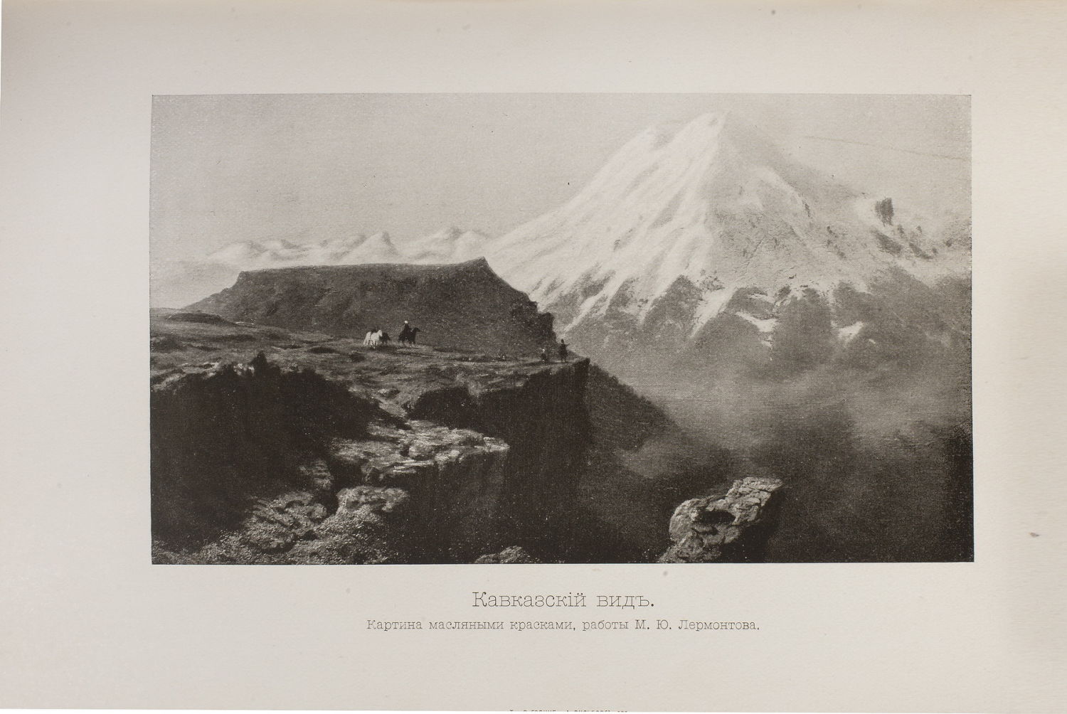 Т. 1. - 1910. - XVI, 414, [1] c., [5] л. портр., ил.: факс.; Т. 2. - 1910. - VIII, 528 c., [22] л. факс., ил.; Т. 3. - 1910. - IV, 370 c., [11] л. факс., ил., портр.; Т. 4. - 1911. - V, 408, [1] c., [15] л. факс., ил., портр.; Т. 5. - 1913. - [6], CXXVIII, 256, [13] c., ил., портр., факс.; 21,5х15,5 см. - (Академическая Библиотека русских писателей. Вып. 2-6). Часть текста на французском языке (т. 4). В качестве иллюстраций к тексту даны воспроизведения всех известных портретов М.Ю. Лермонтова и значительное количество репродукций, рисунков и картин самого поэта — автотипии и все клише выполнены у Р. Голике и А. Вильборга и в типографии «Сириус». Также прилагаются многочисленные факсимиле черновиков Лермонтова. В пяти коричневых полукожаных переплетах эпохи. На корешках вытиснены золотом фамилия автора и номер тома. Форзацы оклеены «муаровой» бумагой. Вмятина на передней крышке (т. 4), надрывы некоторых иллюстраций, деформация первых страниц от влаги (т. 4), прорыв внешнего поля с. 55 (т. 4), утрата 1 л. факс. (т. 4). Хорошая сохранность.