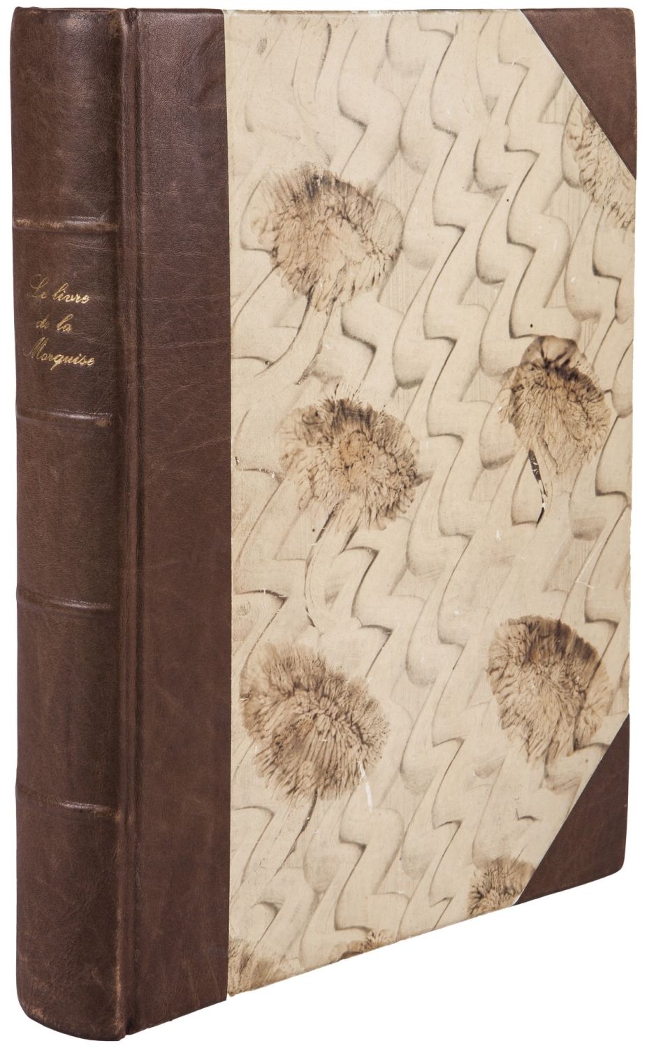 В полукожаном переплете. Торшонированный обрез. В экземпляре напечатаны слова только черной краской, те, что должны быть напечатаны красной, не напечатаны.