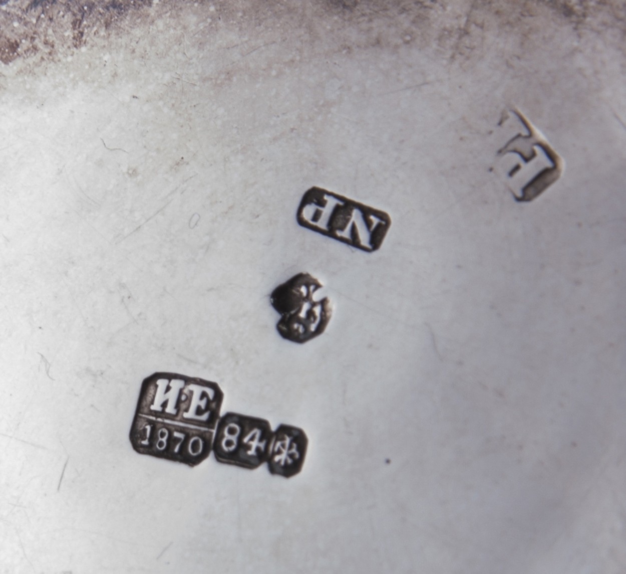 Санкт-Петербург. Серебро, литье, монтировка, золочение. Клейма: «ИЕ» над датой «1870», пробирное клеймо - «84», клеймо города, «РК» и «NP».