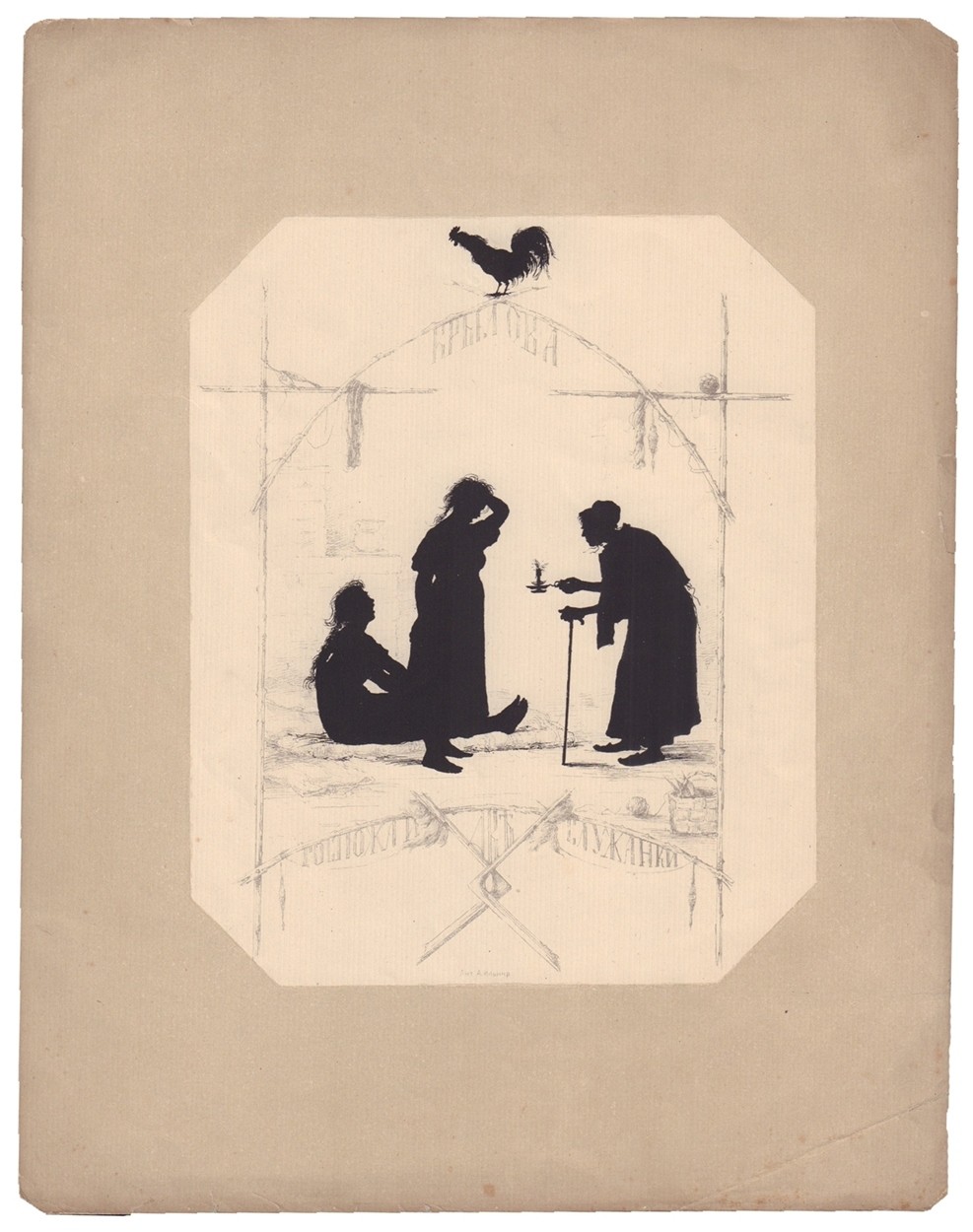 Бем, Э. Литография «Госпожа и служанка» из издания «Силуэты к басням Крылова». - 1878. 34х27 см.