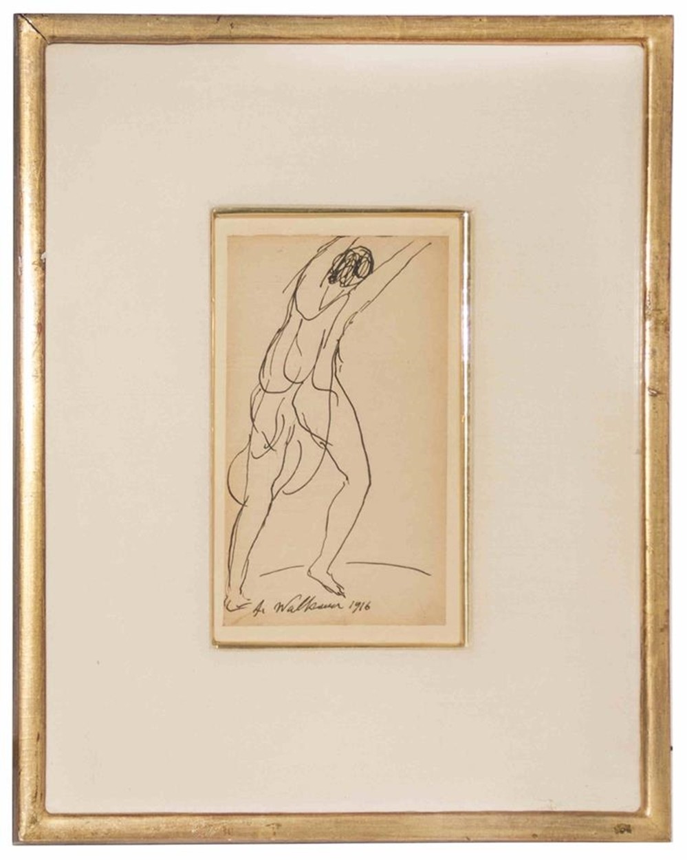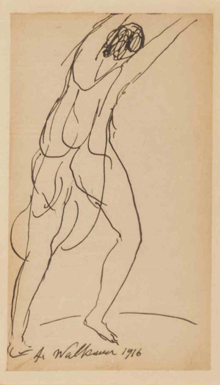 США. Бумага, чернила. 7х12 см. Работа оформлена в раму и паспарту. Подпись художника в левом нижнем углу работы: «A. Walkowitz 1916».