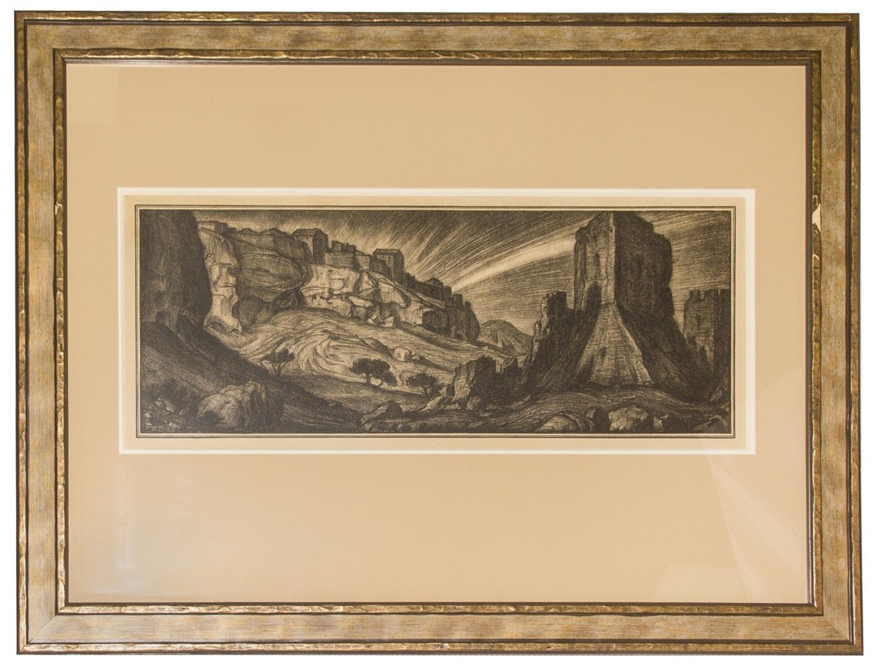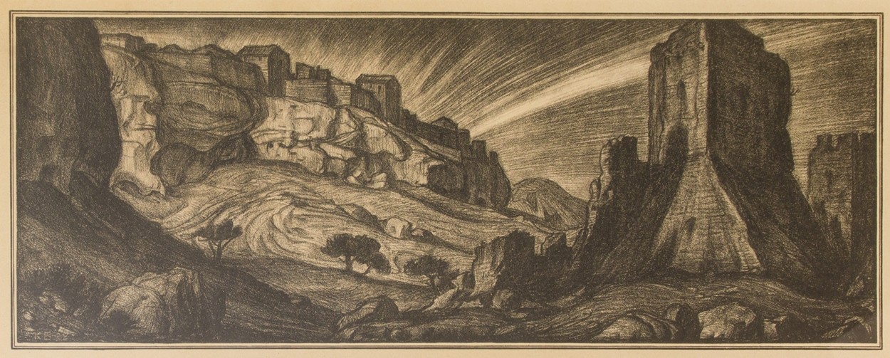 Богаевский, К.Ф. «Старый город» Лист №11 из альбома «Автолитографии. 20 рисунков, исполненных на камне автором». 1922. - 24х55 см