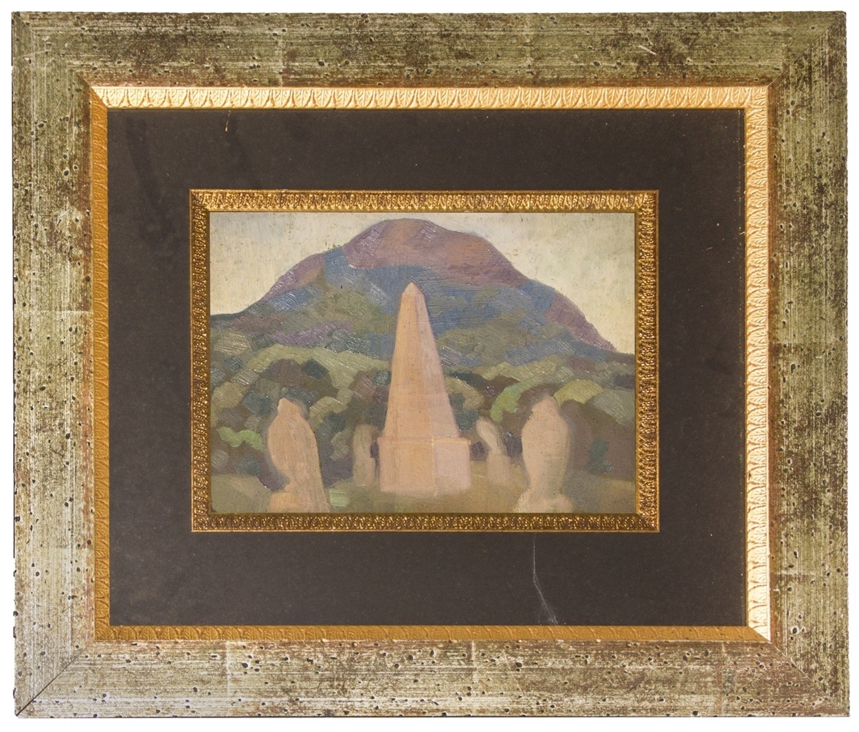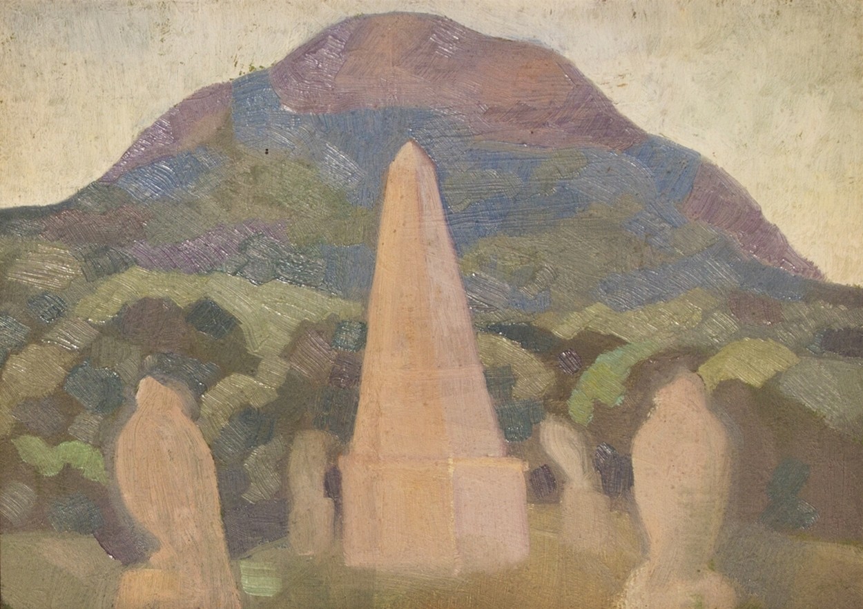Карахан, Н.Г. «Обелиск у гор». - 1940-е. Картон, масло. - 27х35 см.