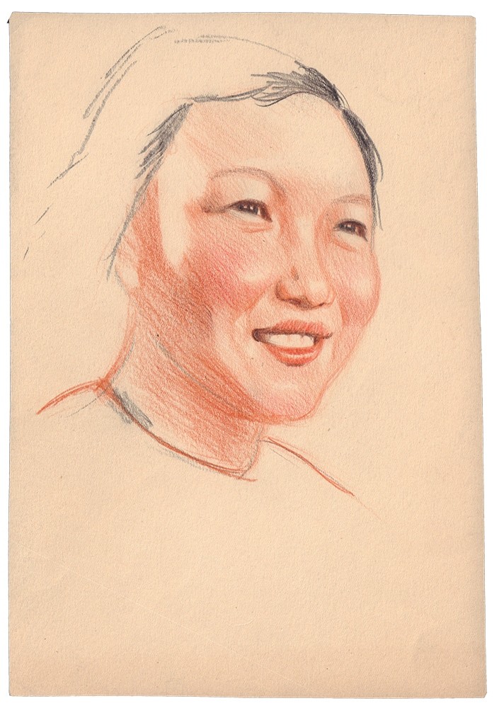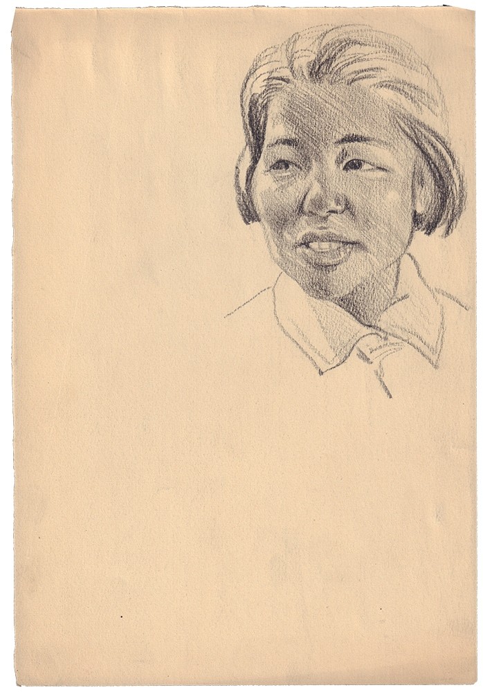 1940-1950-е г.г. Бумага, карандаш, цветные карандаши. Размеры: 23х16 см и 32х22 см. На обороте меньшей работы надпись простым карандашом: «Мамы».