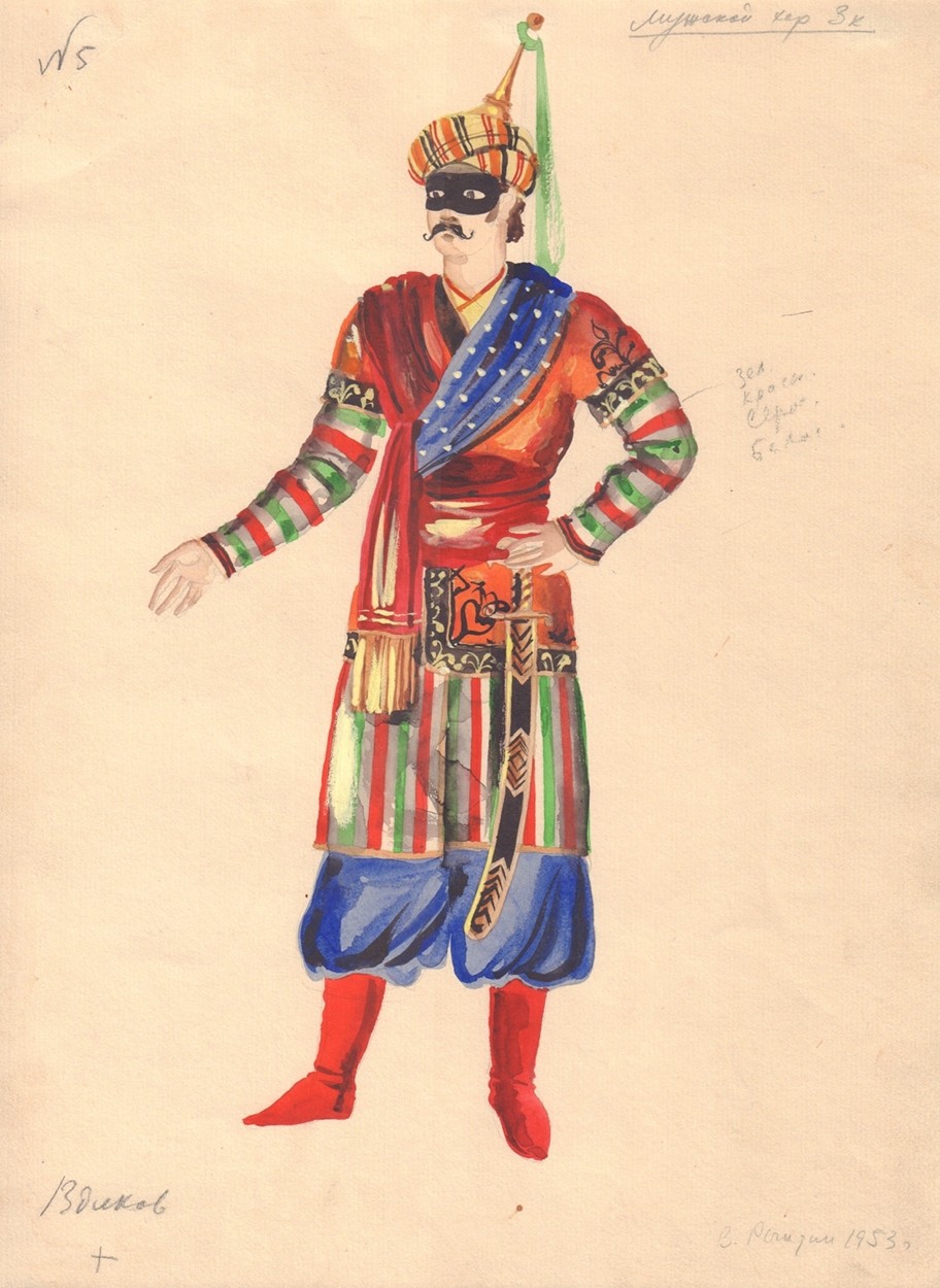 Вадим Федорович Рындин (1902-1974) — театральный художник, педагог. Член художественных объединений «Маковец», «Четыре искусства», Общества московских художников, АХРР. В 1931-1934 годах — главный художник Камерного театра, в 1935-1944 гг. — Театра им. Е. Вахтангова, в 1944-1947 годах — Театра им. Маяковского. В 1947 году вернулся в Театр им. Вахтангова, где занимал пост главного художника до 1958 года. Одновременно с 1953 года был главным художником Большого театра. Третий муж легендарной балерины Галины Сергеевны Улановой (1910-1998).
