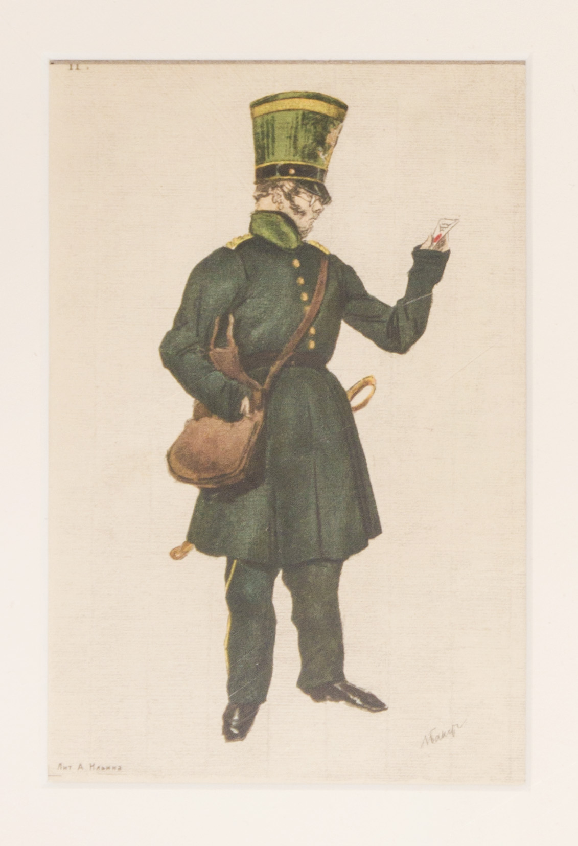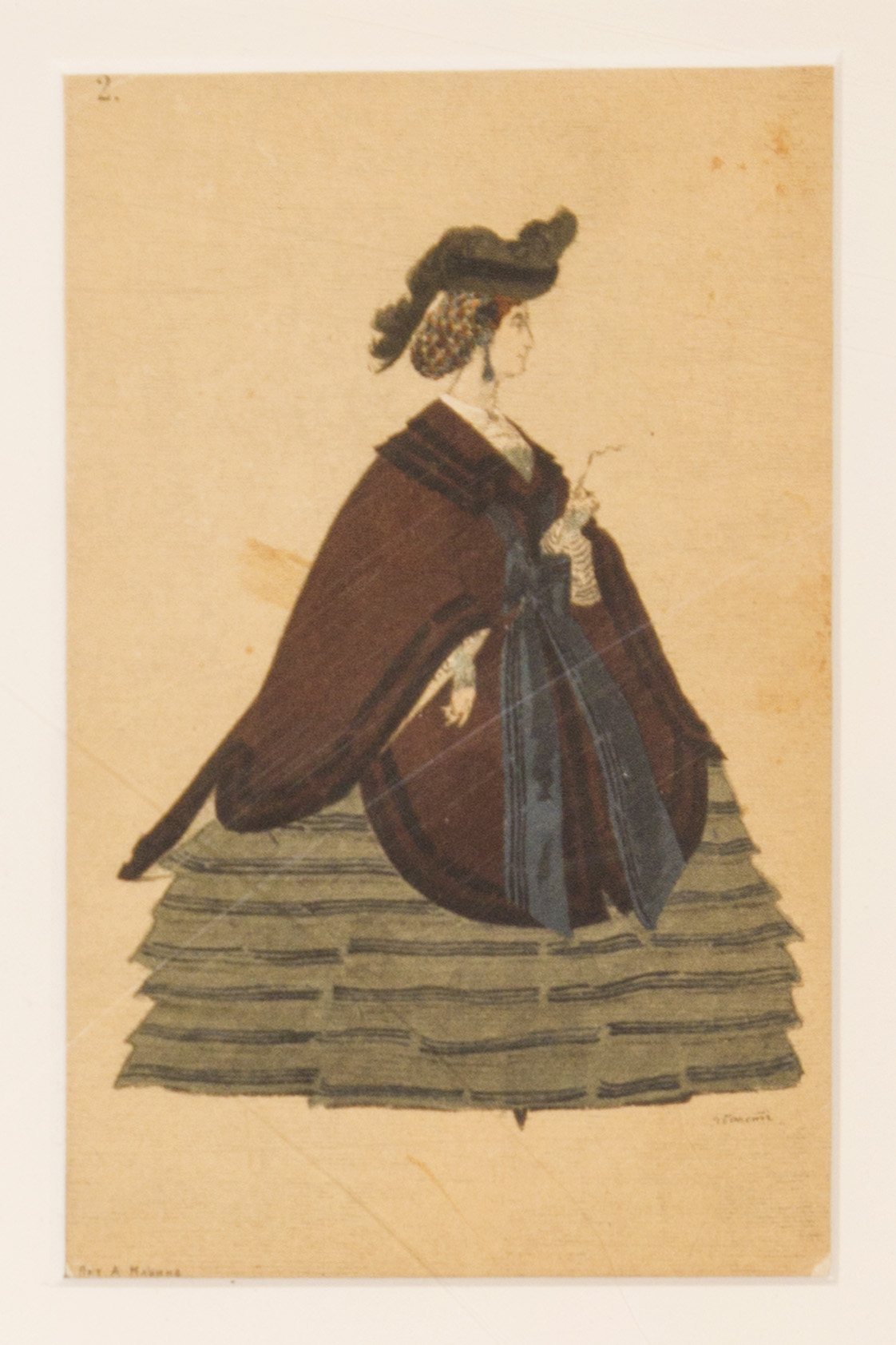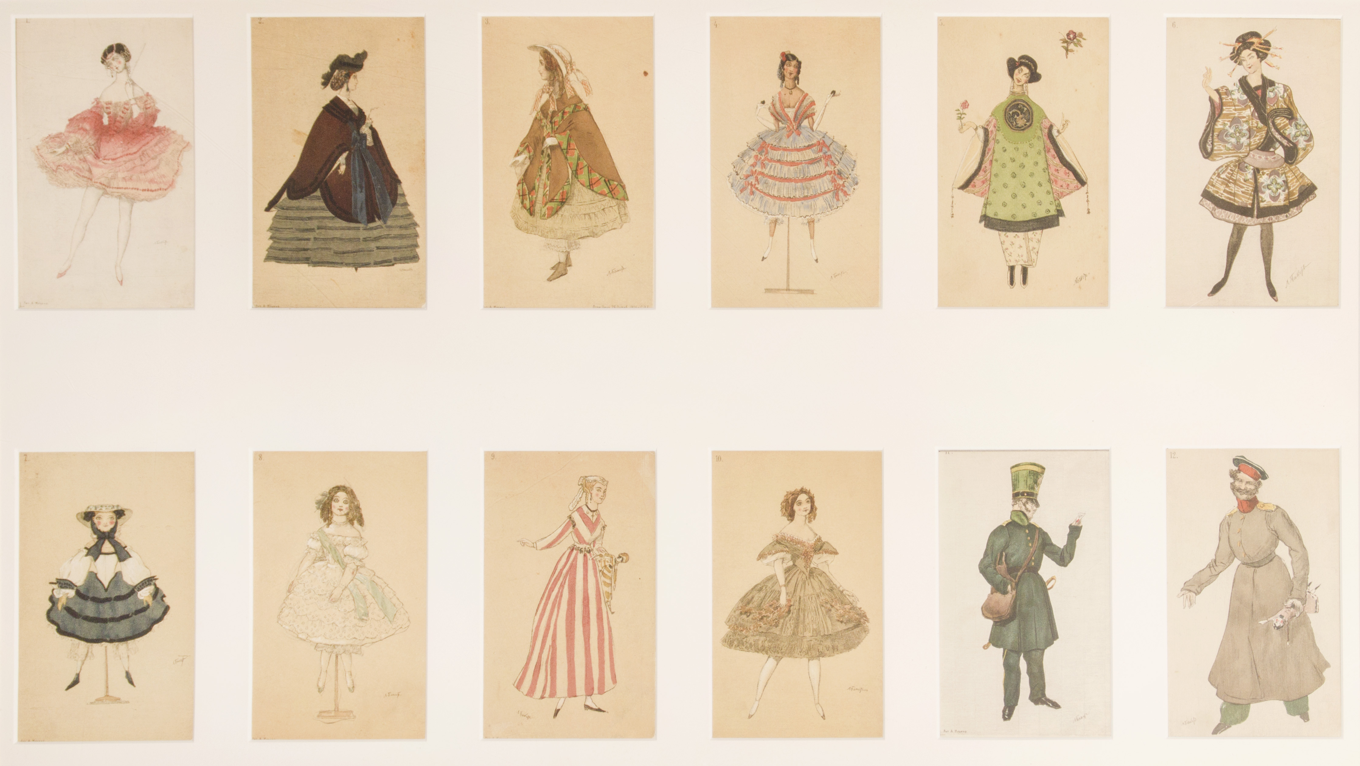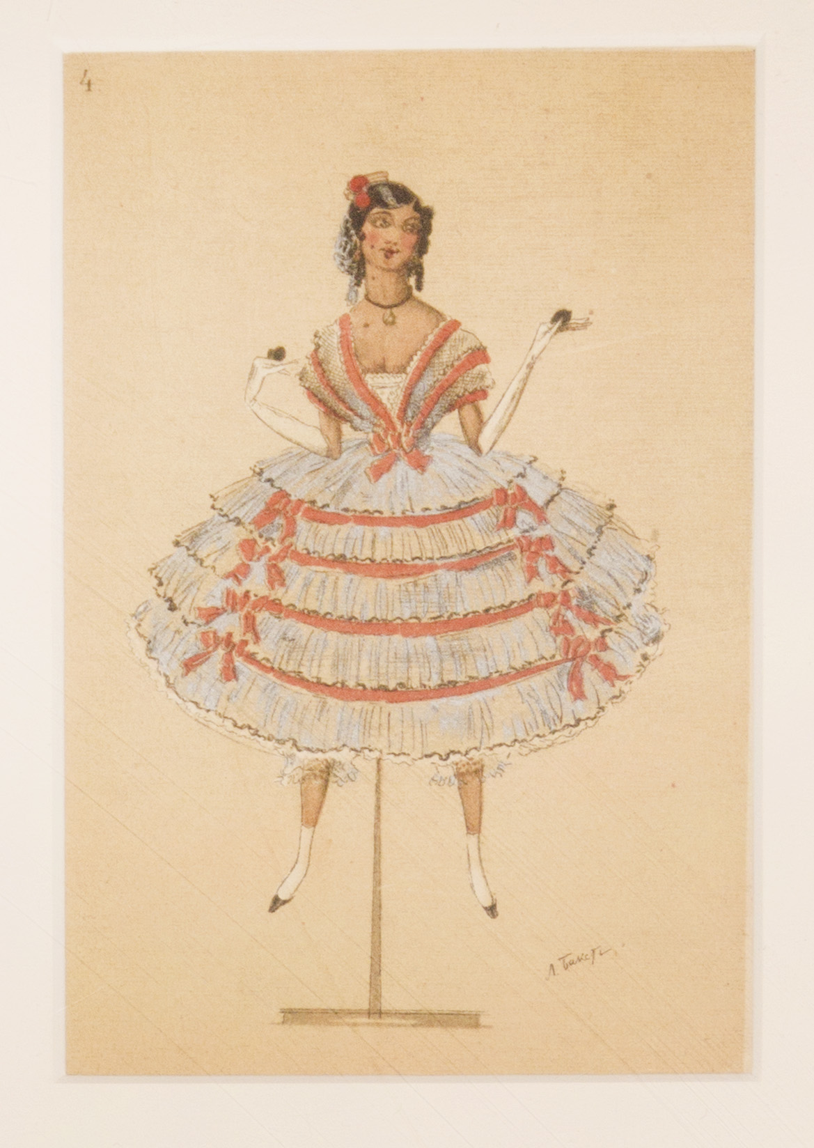 Лев Бакст в 1903 году выполнил декорации и эскизы костюмов к балету «Фея кукол» И. Байера, поставленному в Эрмитажном и Мариинском театрах. Вскоре после премьеры спектакля была издана серия открыток, в которой были использованы эскизы костюмов для постановки. Лев Самойлович Бакст (1866-1924) — художник, сценограф, иллюстратор и дизайнер, работавший преимущественно в Санкт-Петербурге и Париже. Мастер станковой живописи и театральной графики, участник объединения «Мир искусства» и театрально-художественных проектов С. П. Дягилева, один из законодателей европейской моды на экзотику и ориентализм в начале XX века.