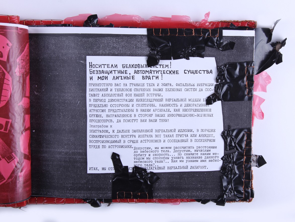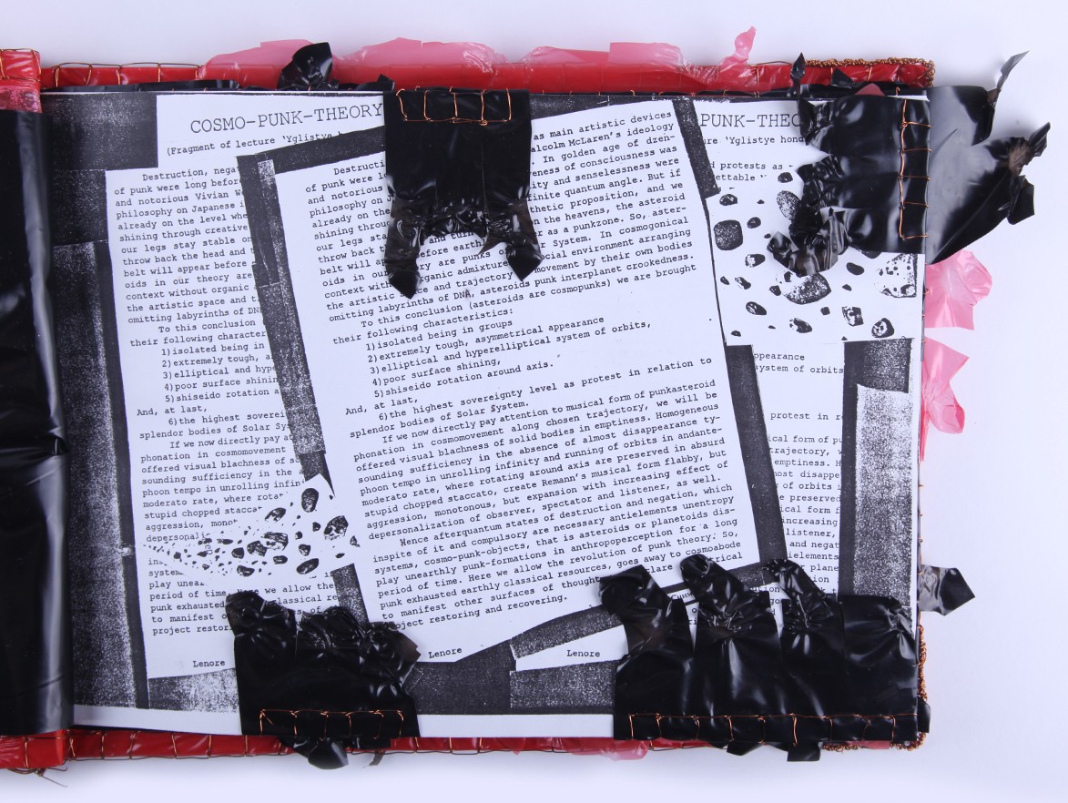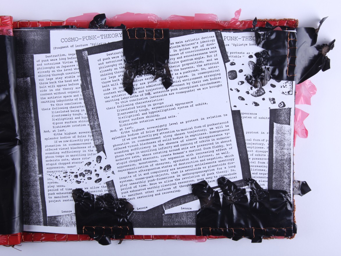 Книга ручной работы, использованы: бумага, полиэтилен, медная проволока, гуашь, ксерокс.