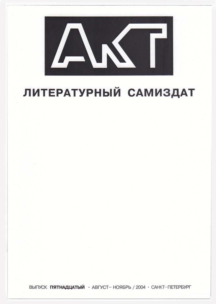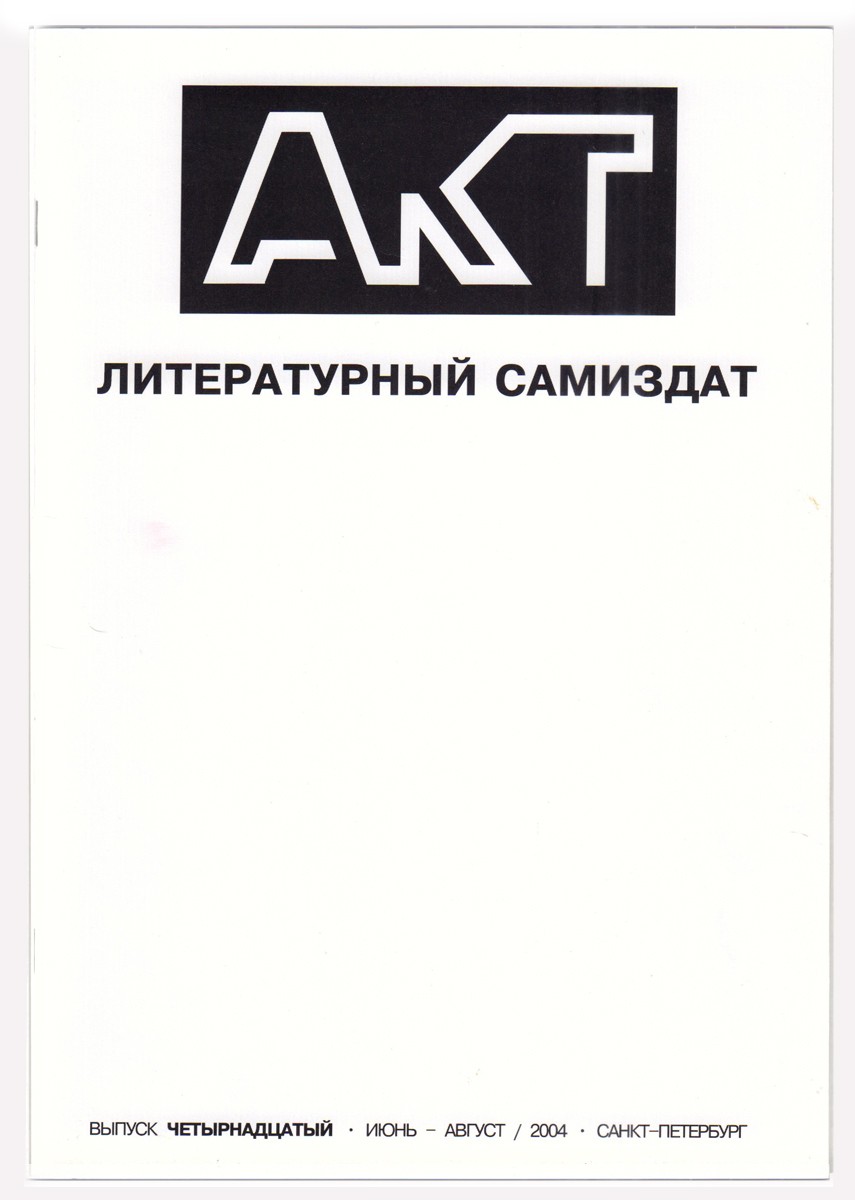 1. Акт: литературный самиздат. Выпуск четырнадцатый. Июнь-август 2004 /ред. Т. Буковская; сост. В. Мишин. - СПб.: [б.и.], 2004. - 24 с., ил. - 125 экз.2.Акт: литературный самиздат. Выпуск пятнадцатый. Август-ноябрь 2004/ ред. Т. Буковская; сост. В. Мишин. - СПб.: [б.и.], 2004. - 24 с., ил. - 125 экз.3. Акт: литературный самиздат. Выпуск шестнадцатый. 2005/ ред. Т. Буковская; сост. В. Мишин. - СПб-Москва.: [б.и.], 2005. - 24 с., ил. - 125 экз.4. Акт: литературный самиздат. Выпуск семнадцатый. 2005/ ред. Т. Буковская; сост. В. Мишин. - СПб-Москва.: [б.и.], 2005. - 24 с., ил. - 125 экз.5. Акт: литературный самиздат. Выпуск восемнадцатый. 2005/ ред. Т. Буковская; сост. В. Мишин. - СПб-Москва.: [б.и.], 2005. - 24 с., ил. - 125 экз.6. Акт: литературный самиздат. Выпуск девятнадцатый. 2005/ ред. Т. Буковская; сост. В. Мишин. - СПб-Москва.: [б.и.], 2005. - 24 с., ил. - 125 экз; 29,5x21 см.