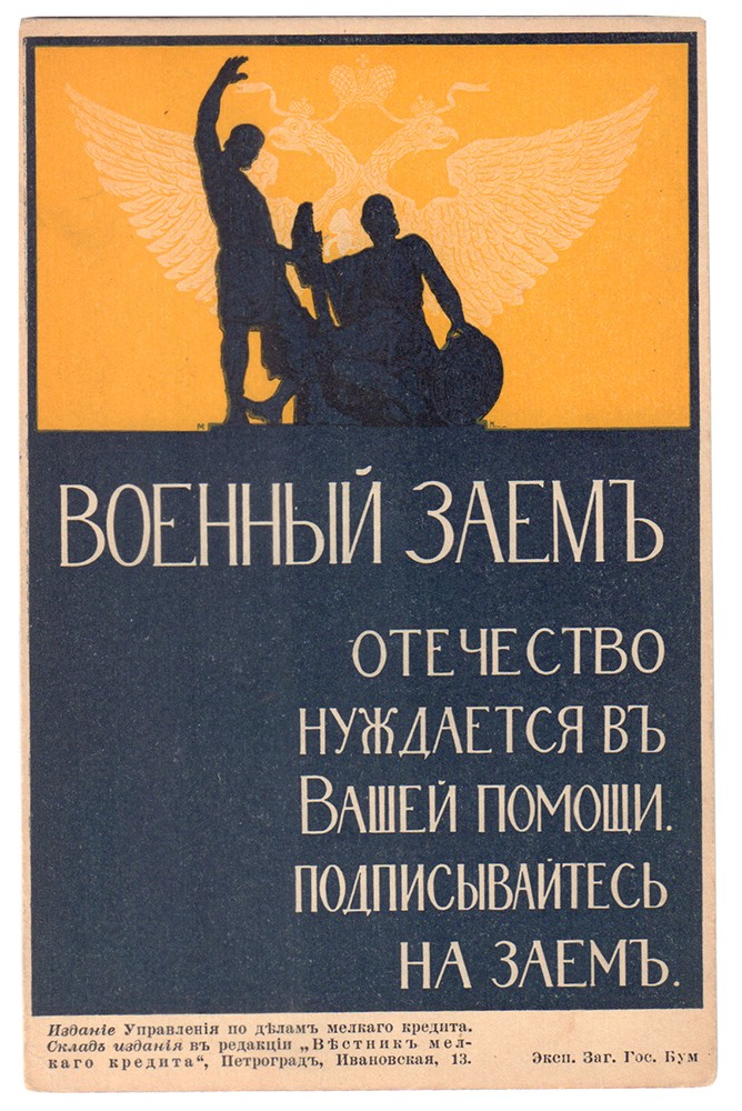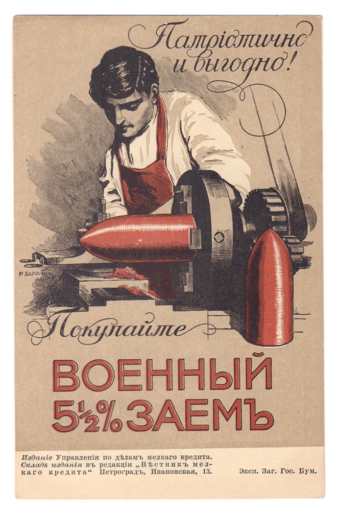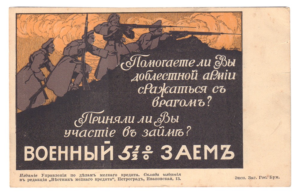 Шесть открыток «Военный 5 1/2 заем» / худ. Р. Зарриньш; Янковский - [Б.м.]: Эксп. Заг. Гос. Бум. [1915]. - 9х14 см.