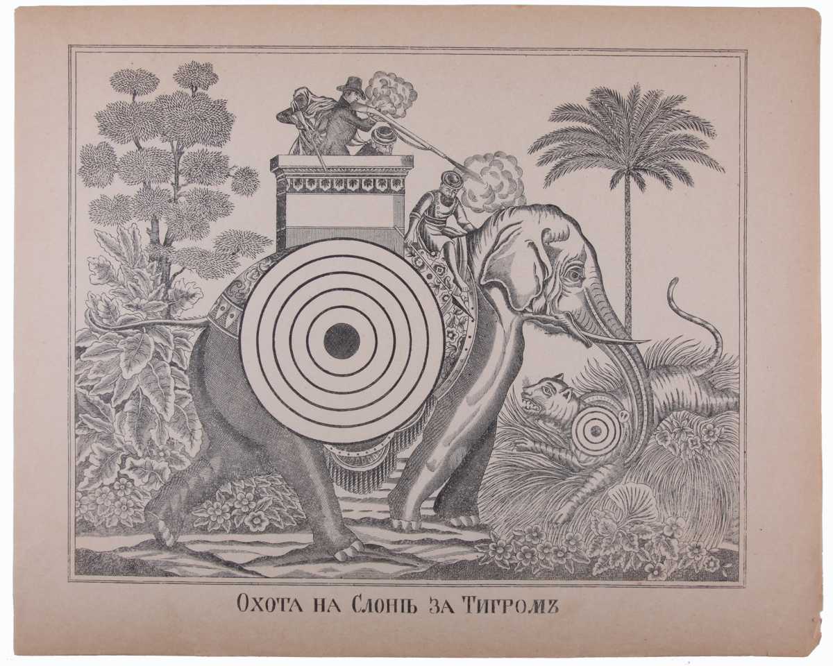 Лубок «Охота слона за тигром». 1896. Литография. - 34х43 см.