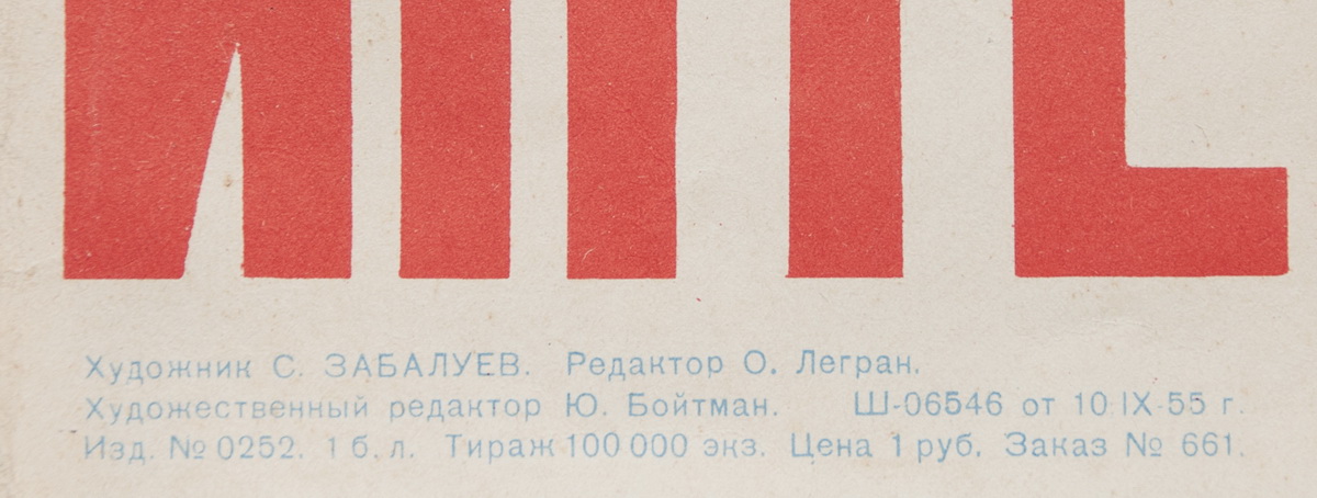 Станислав Михайлович Забалуев (1928-1964) — художник-график, иллюстратор, плакатист. Учился в Пензенском художественном училище имени К. А. Савицкого, позже — в Московском художественном институте имени В. И. Сурикова. Автор плакатов на социальные и политические темы: «Во имя мира во всем мире!» (1953), «Напомним на всякий случай агрессорам!» (1955), «Каждому клубу – интересную программу работы!».