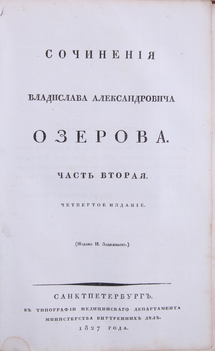 Владислав Александрович Озеров (1769-1816) — драматург и поэт, автор трагедий, популярных в русском театре начала XIX века.