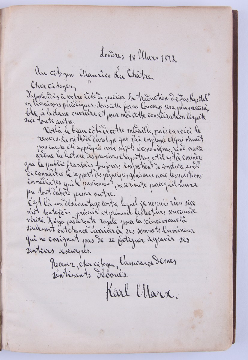 Прижизненное издание главного труда Карла Маркса на французском языке. В коленкоровом переплете эпохи.