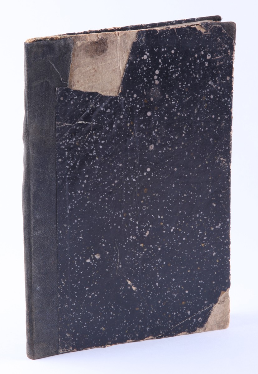 Утрата авантитула и своб. л. форзаца. Бледные разводы. Утрата фрагмента своб л. форзаца. Корешок частично отходит от блока. Утрата фрагментов бумаги на верхней переплетной крышке.
