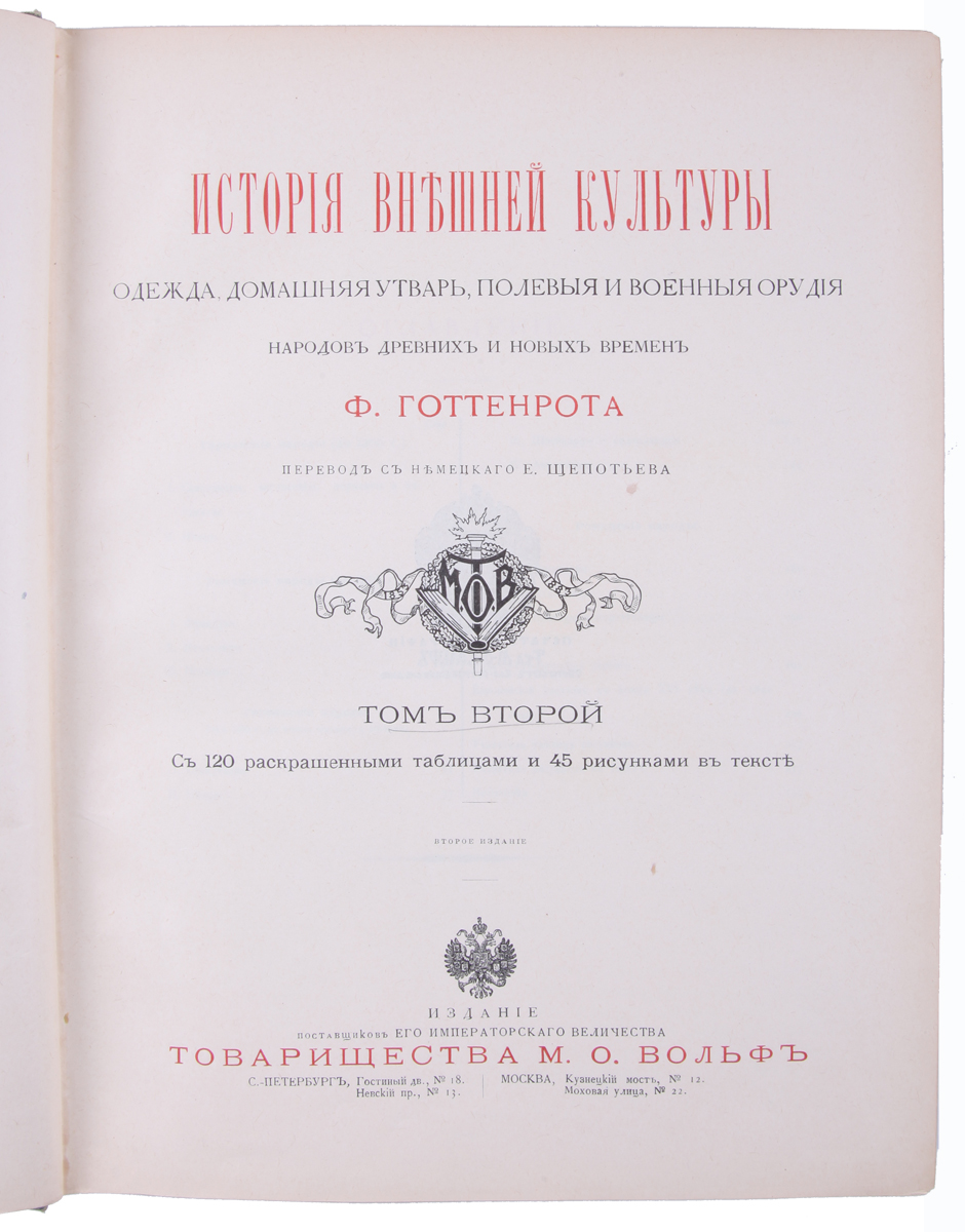 Двухтомный труд немецкого историка Фридриха Готтенрота (1840-?), относящийся к быту разных народов — превосходный материал по истории моды, ремесла (в том числе военного и оружейного производства, предметов, относящихся к судоходству и мореплаванию, музыкальных инструментов) и декоративно-прикладного искусства, дающий возможность сравнивать различные культуры между собой.