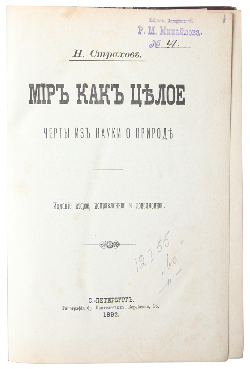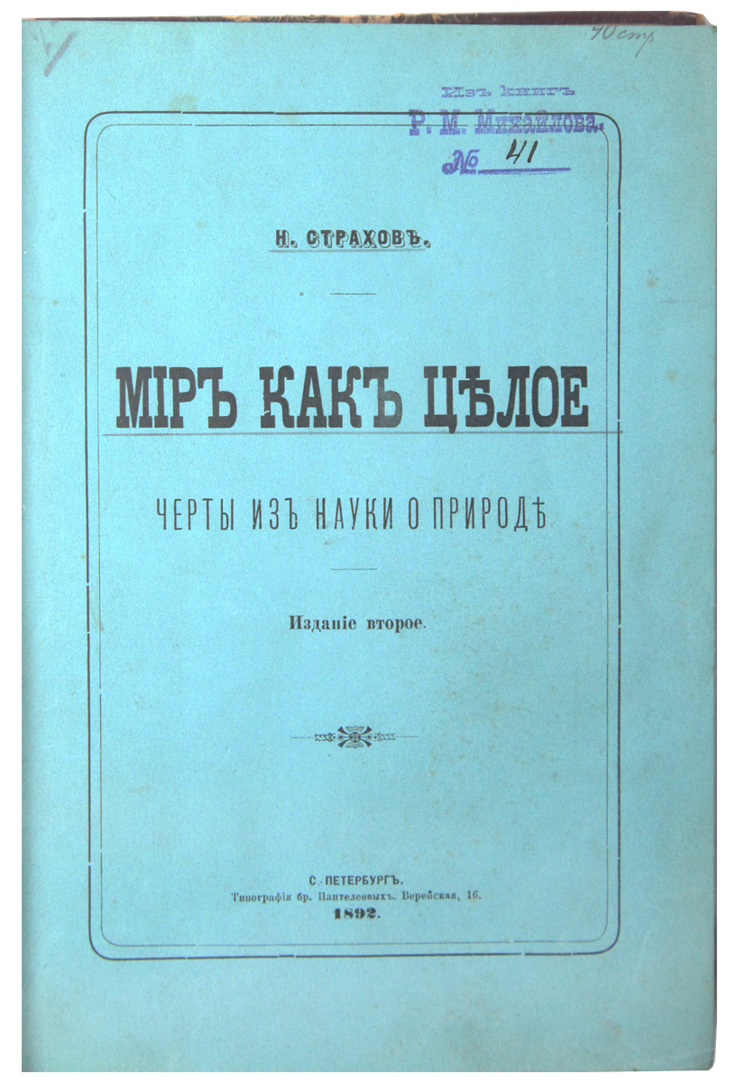 Николай Николаевич Страхов (1828-1896) — философ, публицист, литературный критик, член-корреспондент Петербургской академии наук.