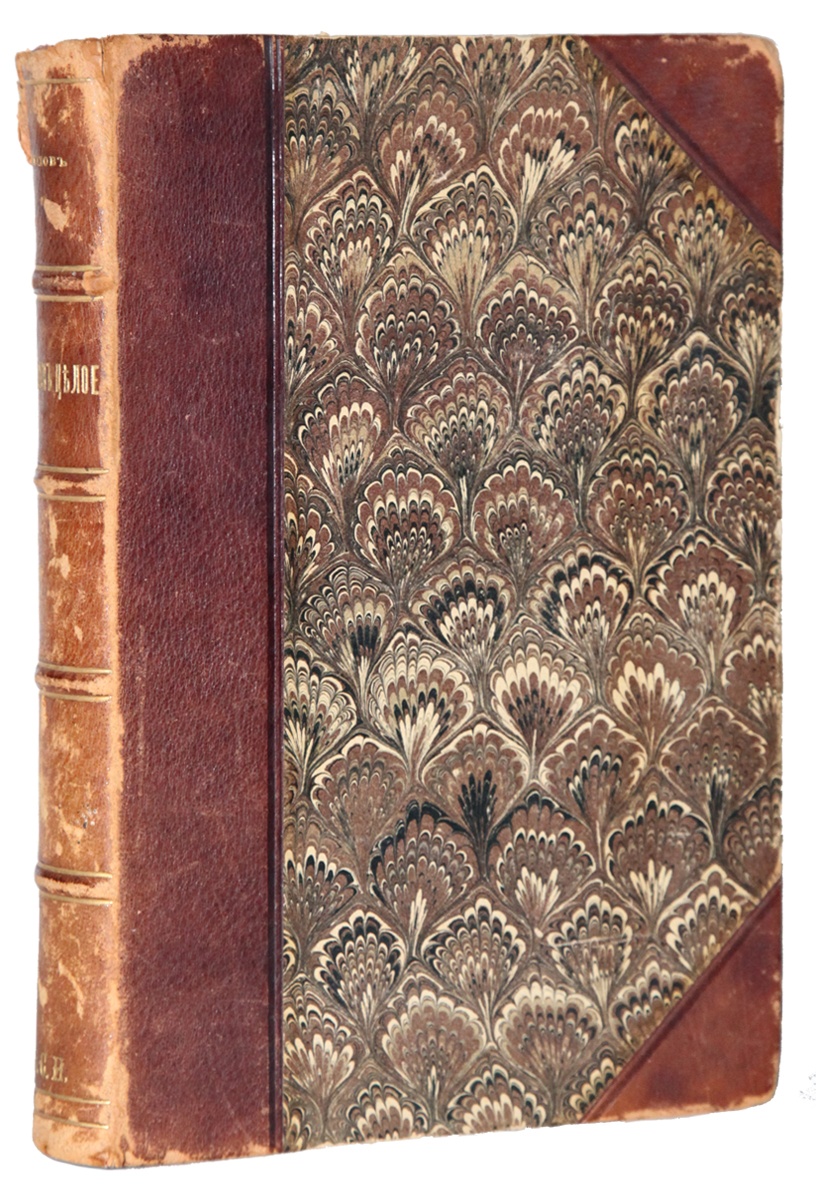 В полукожаном переплете эпохи мастерской Т.И. Гагена в Москве. Шрифтовая издательская обложка сохранена. Шт. экслибрис Р.М. Михайлова на 1-2 с. обл. и тит. л. На корешке вытиснен суперэкслибрис «М.С.Н.». Обрез окрашен под «павлинье перо».