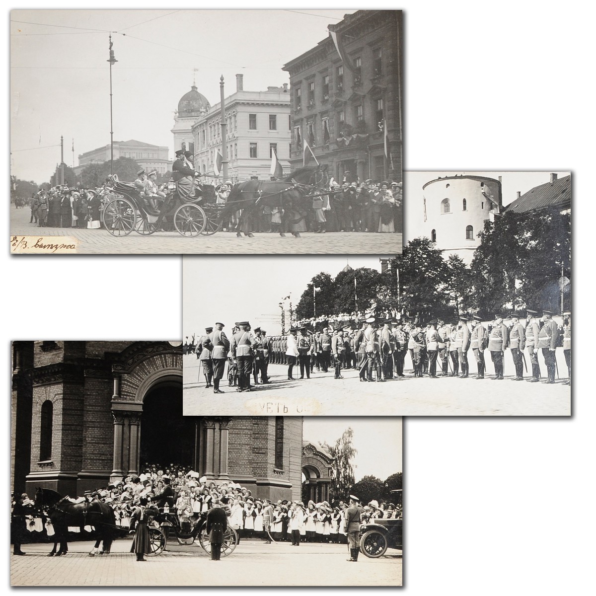 Коллекционная сохранность. На фотооткрытках изображен приезд императора Николая II в Ригу в 1910 году. Визит осуществлялся в связи с 200-летием присоединения Риги к Российской империи. Николай II Александрович (1868-1918) — император Всероссийский, царь Польский и великий князь Финляндский.