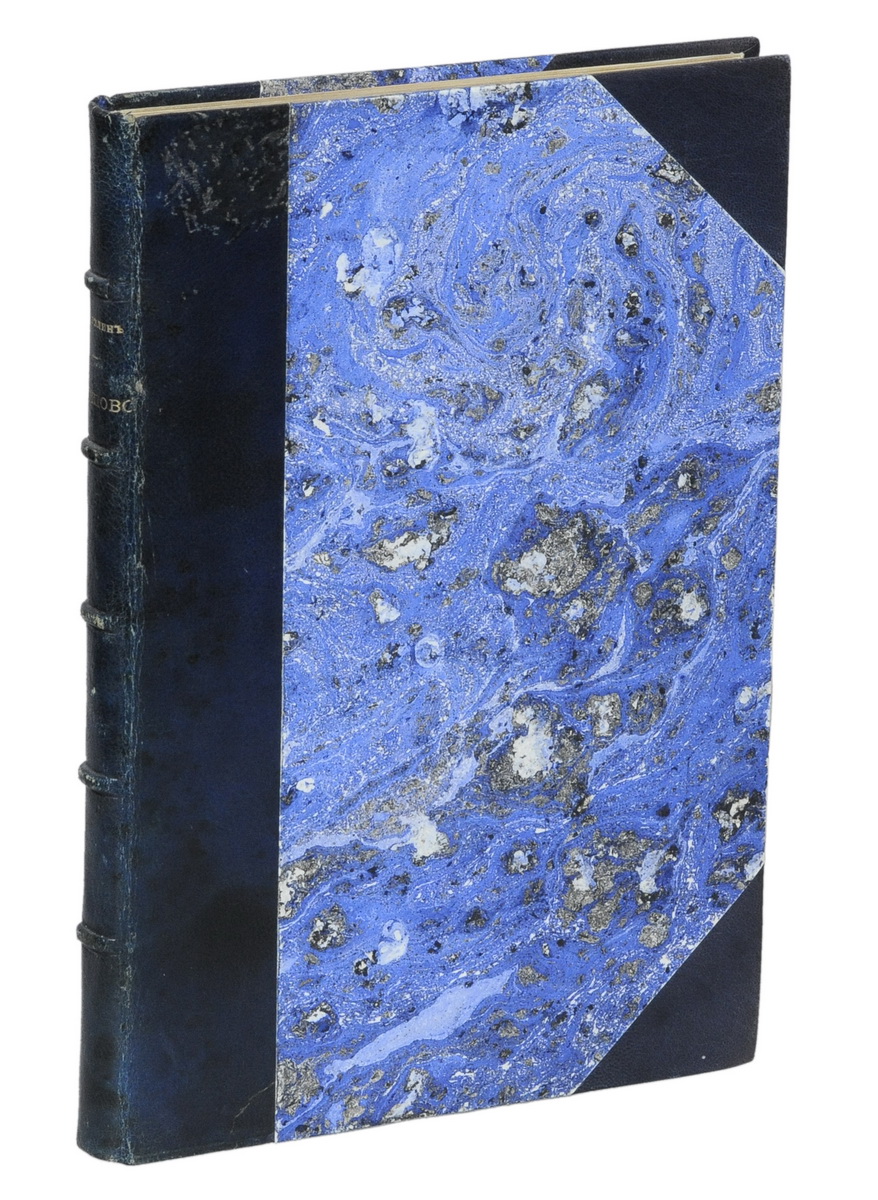 В полукожаном переплете, стилизованном под переплеты эпохи. Двухцветная шрифтовая издательская обложка сохранена в переплете.
