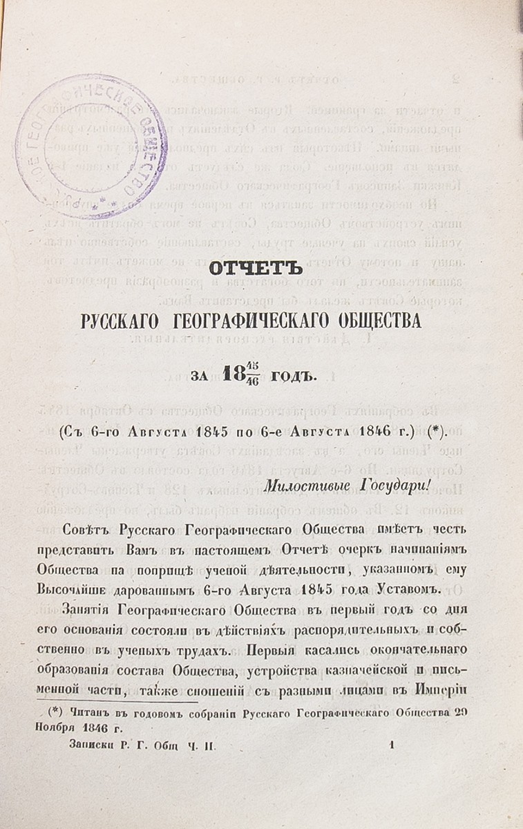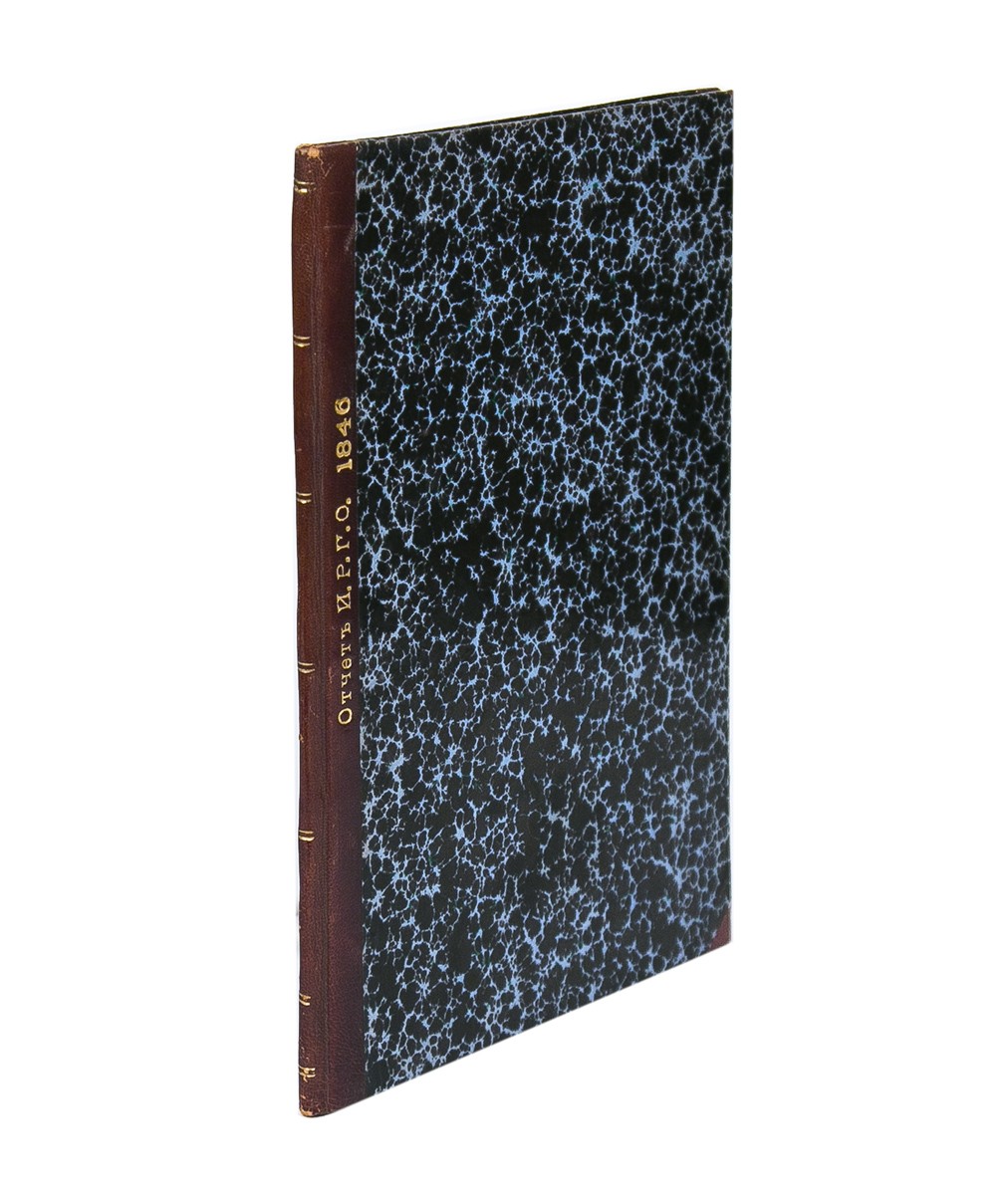 Отдельный оттиск из "Записок Русского Географического Общества". В полукожаном переплете эпохи с золотым тиснением на передней крышке. Штемп. экслибрис РГО на с.1.