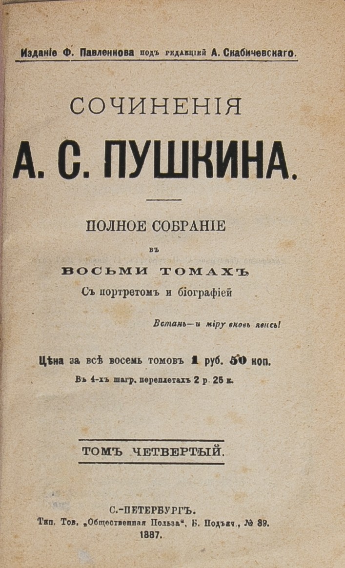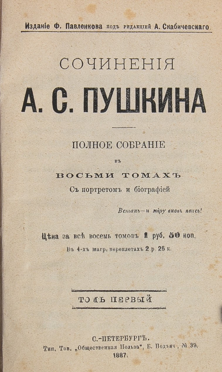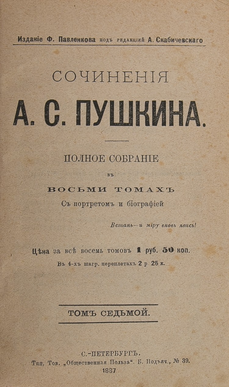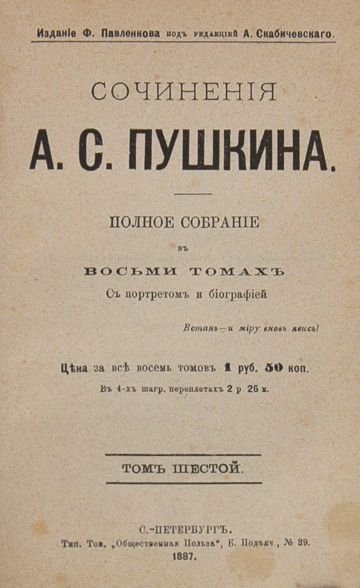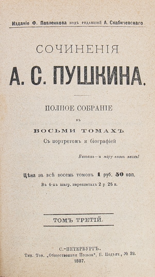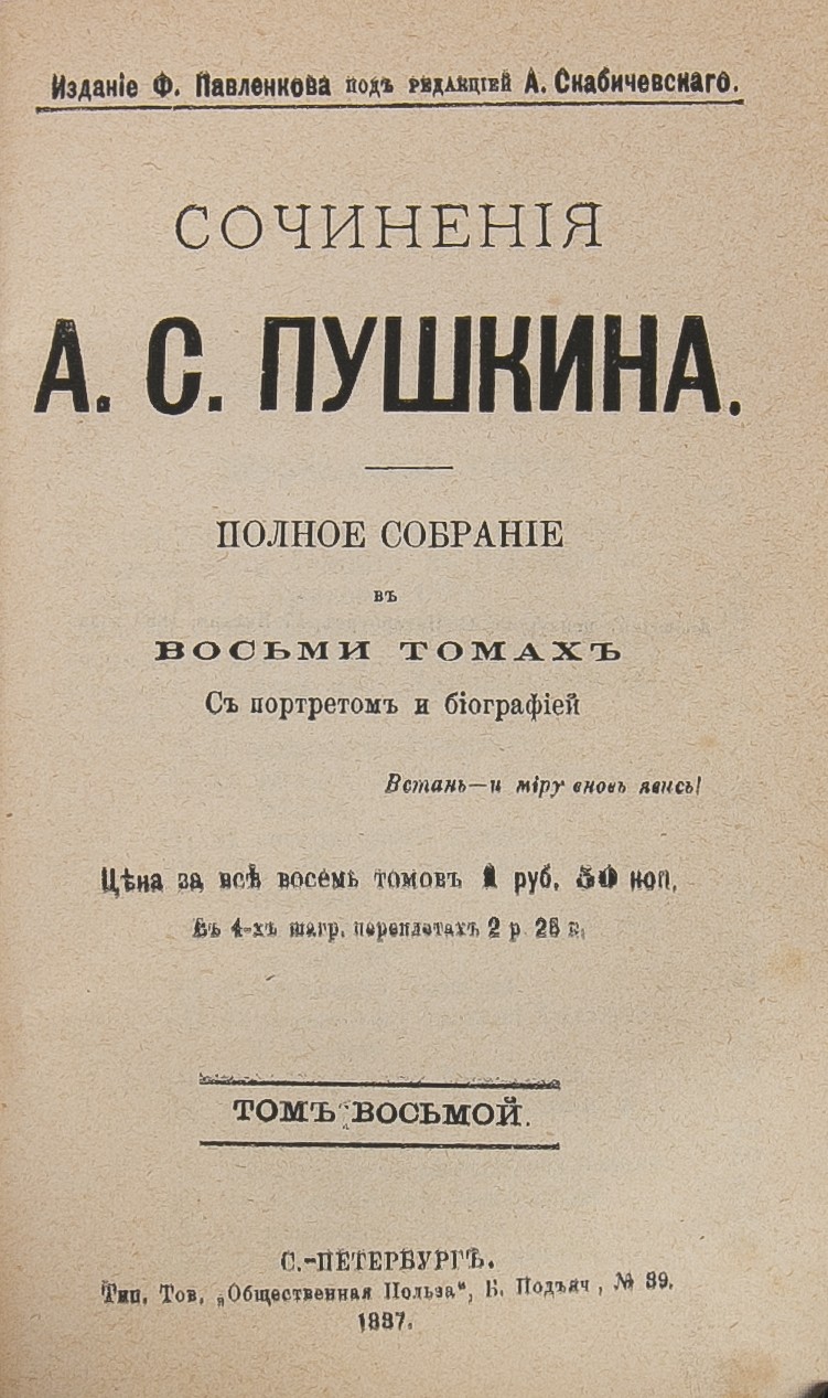 Т. 1. - [1] л. фронт. (портр.), [2], VI, II, 366 с.; Т. 2. - [2], II, 303 с.; Т. 3. - [2], VI, 399 с.; Т. 4. - [2], Х, 336 с.; Т. 5. - [4], 355 с.; Т. 6. - [2], II, 314 с.; Т. 7. - [2], II, 407 с.; Т. 8. - [2], III, [3], 281, CXVIII, XXVIII, [2] с.; 15х10,5 см.
