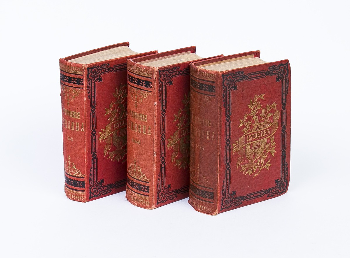 В трех изд. коленкоровых переплетах с конгревным тиснением золотом и краской по крышкам переплета и корешку. Суперэкслибрис на нижней крышке переплета.