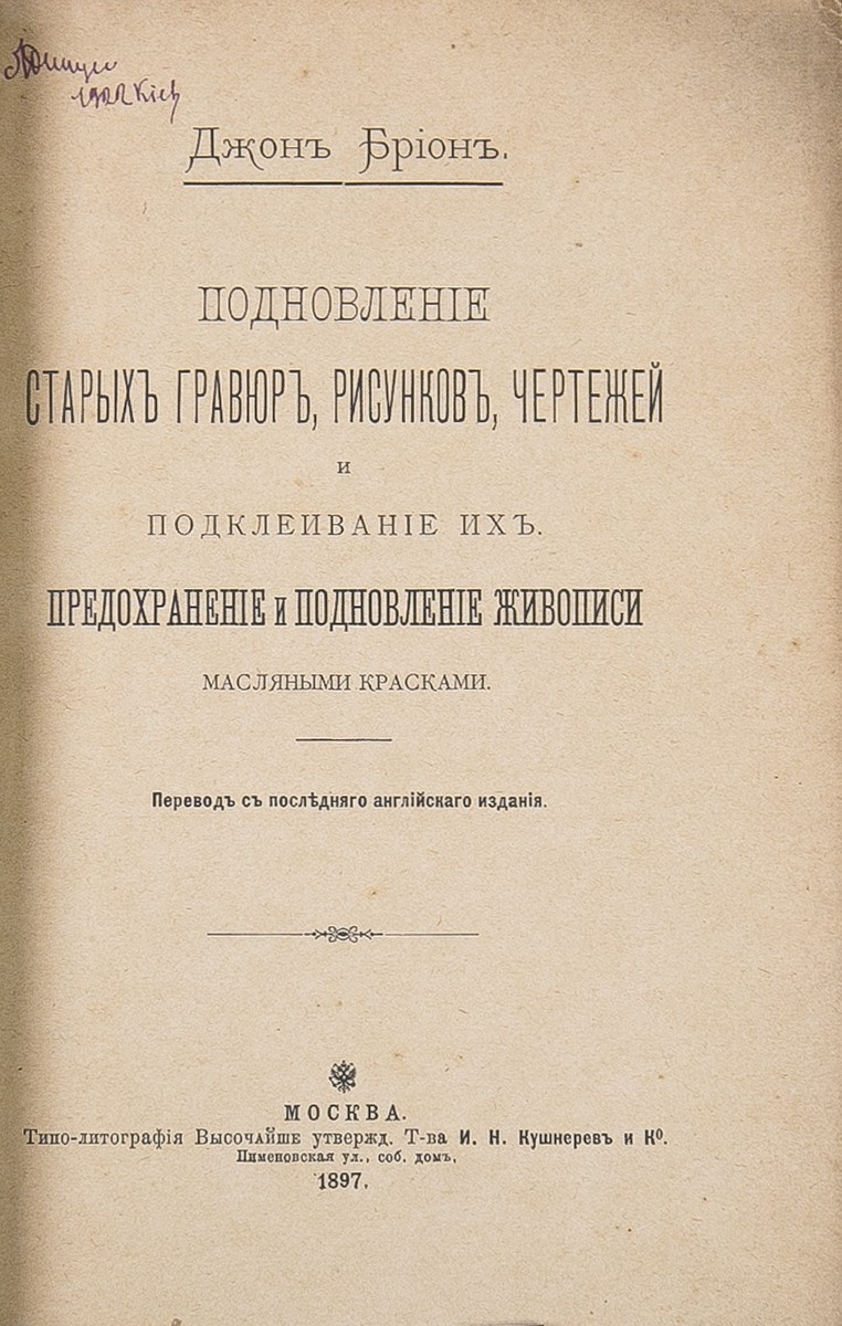 В шрифтовой издательской обложке. В блоку приклеен лист рукописного текста А.Маркова (заметки "Исправление поврежденных сыростью гравюр", "О чистке монет", "Медь").