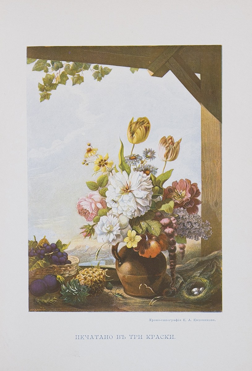 В ледериновом переплете, стилизованном под переплеты эпохи. 3-4 с. издательской обложки сохранена.