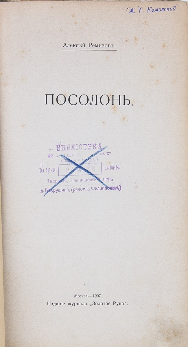 В иллюстрированном издательском картонаже. Шт. экслибрис А.Г. Комовского на тит. л.