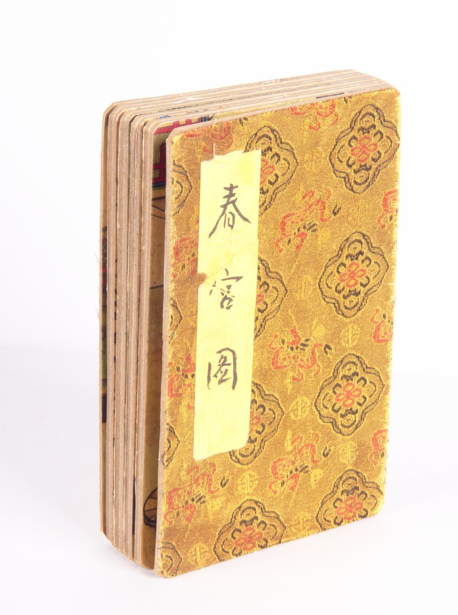 Читается справа налево. Наружные стороны крайних досок обклеены парчой.