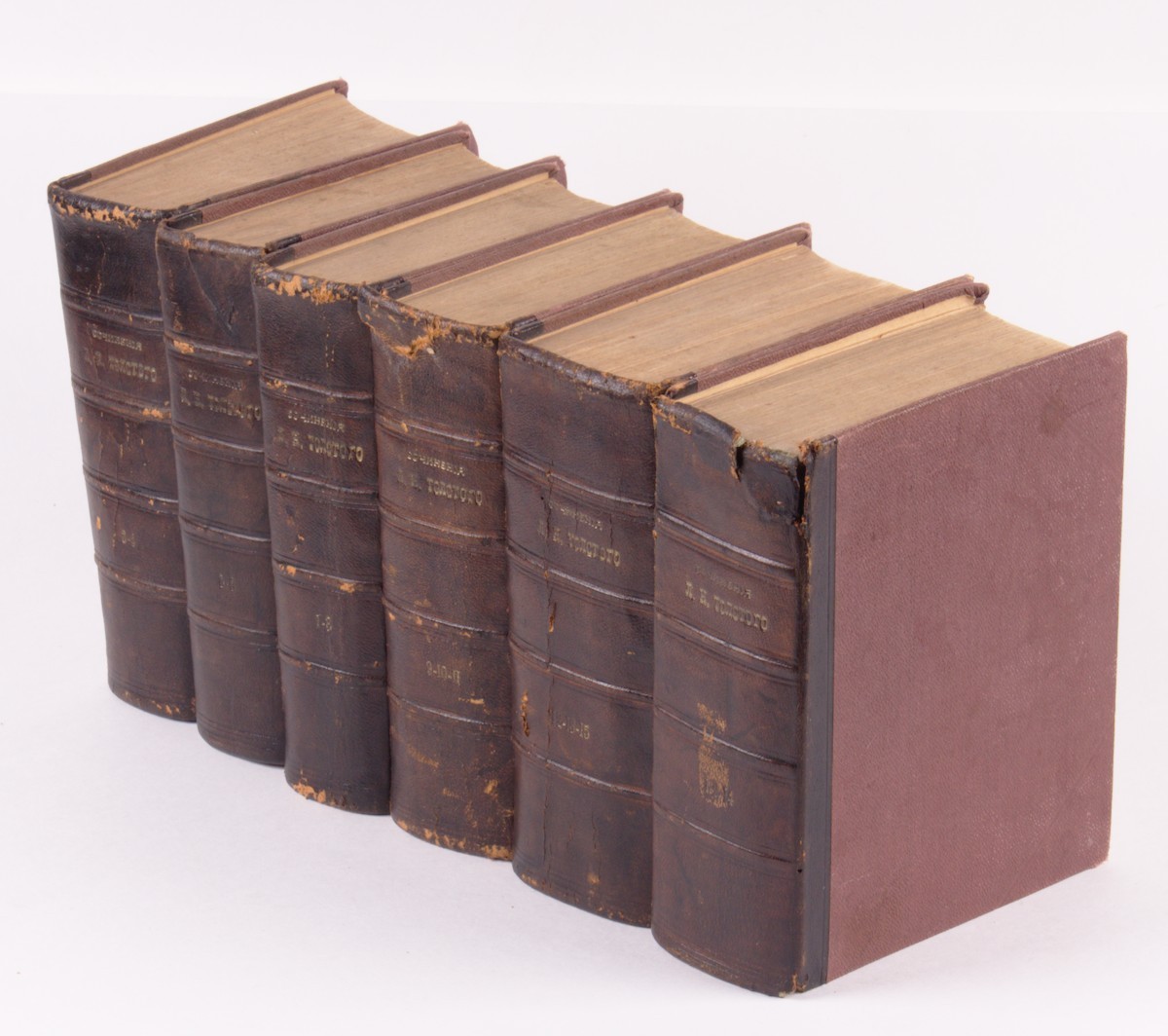 В шести полукожаных переплетах эпохи с золотым тиснениям на корешках.