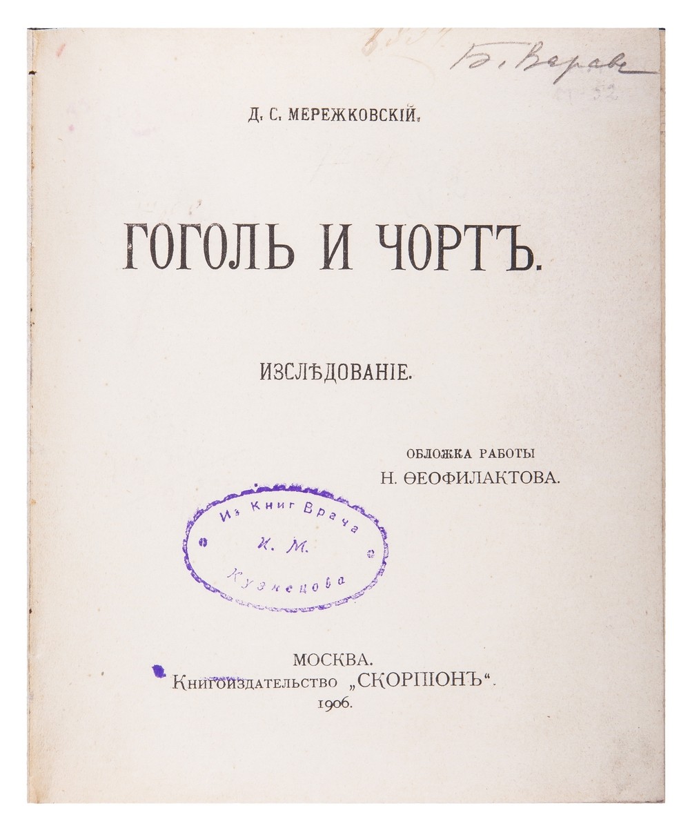 В полукожаном переплете эпохи. Вклееный экслибрис Б.Н. Варавы на форзаце. Штемп.экслибрисы И.М. Кузнецова на тит.л., шмуцтитуле и с.1.
