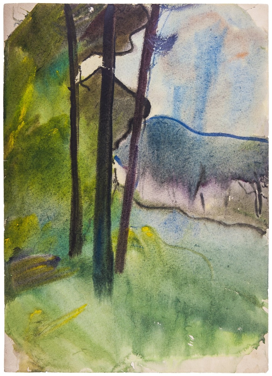 Три рисунка неизвестного художника. - 1950-е. Бумага, акварель. - Размер от 21х29 см. до 36х48 см.