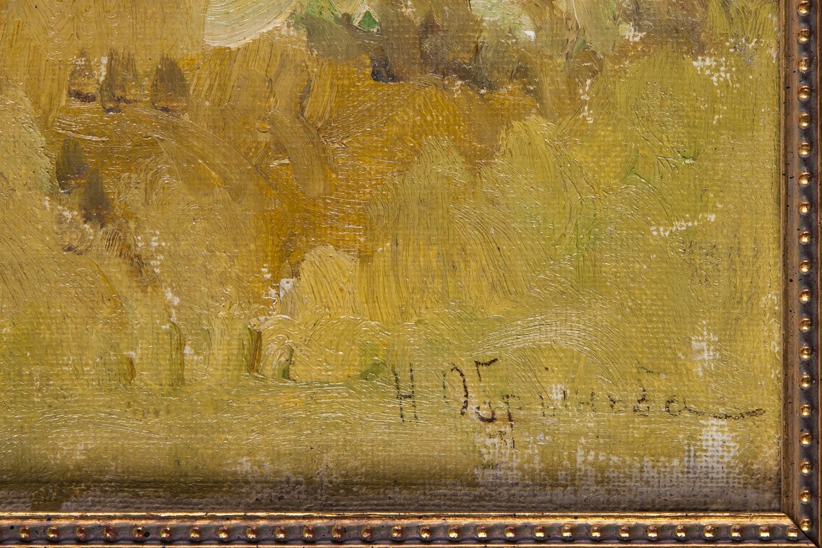 В правом нижнем углу авторская подпись. В раме.