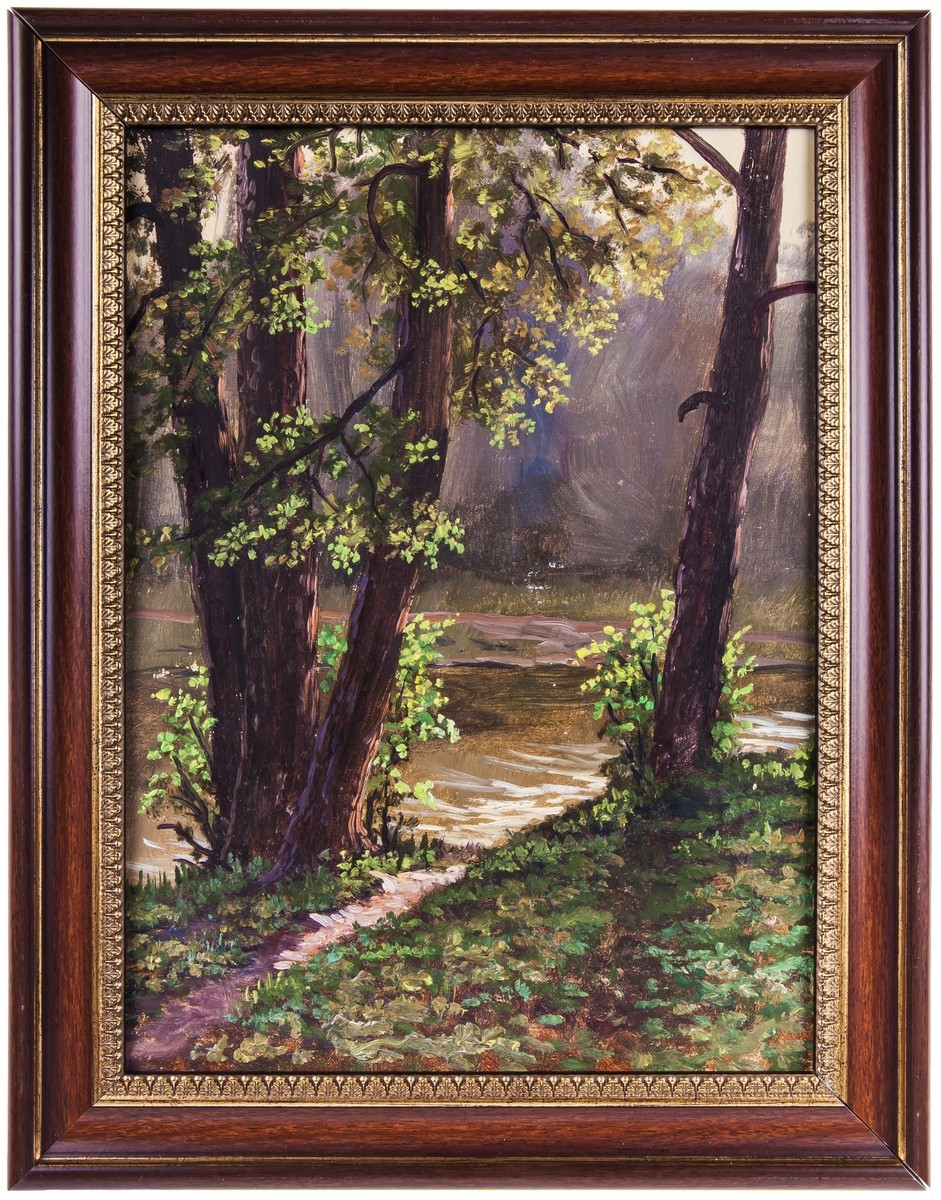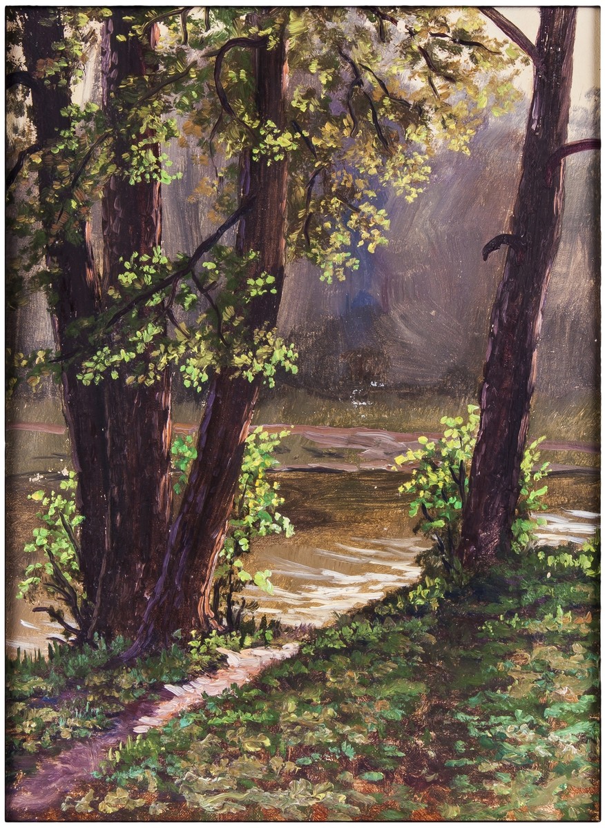 Борисов, Н.А. «Липы на берегу». - 1978. Картон, масло. - 34х25 см.