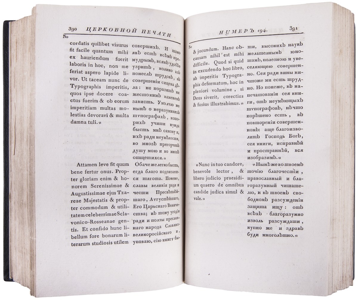 В цельнокожаном переплете, стилизованном под переплеты эпохи. Форзацы оклеены муаром.