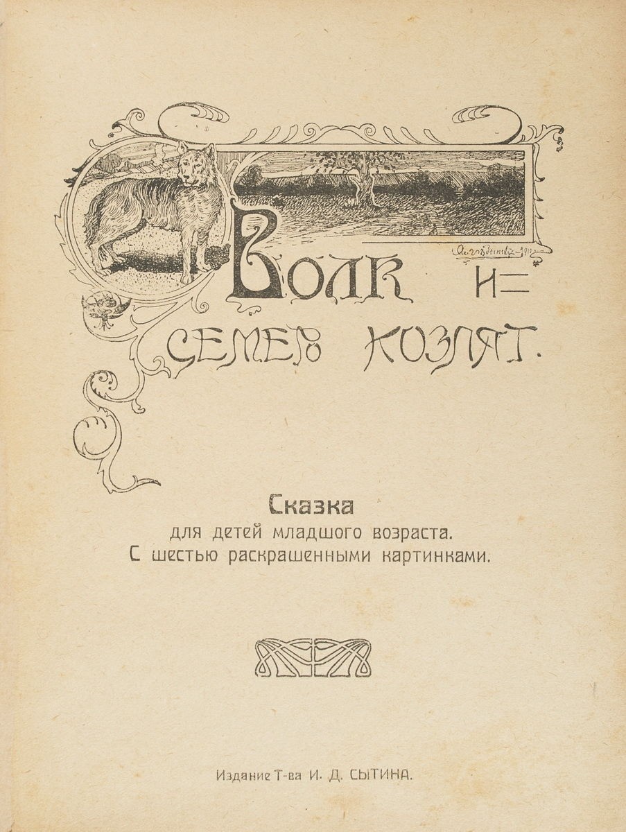 Волк и семеро козлят: Сказка для детей младшего возраста. С шестью раскрашенными картинками / [Рис. Э. Лисснер]. - М.: Т-во И.Д. Сытина, 1918. - 20 c.; 19,5х15 см.