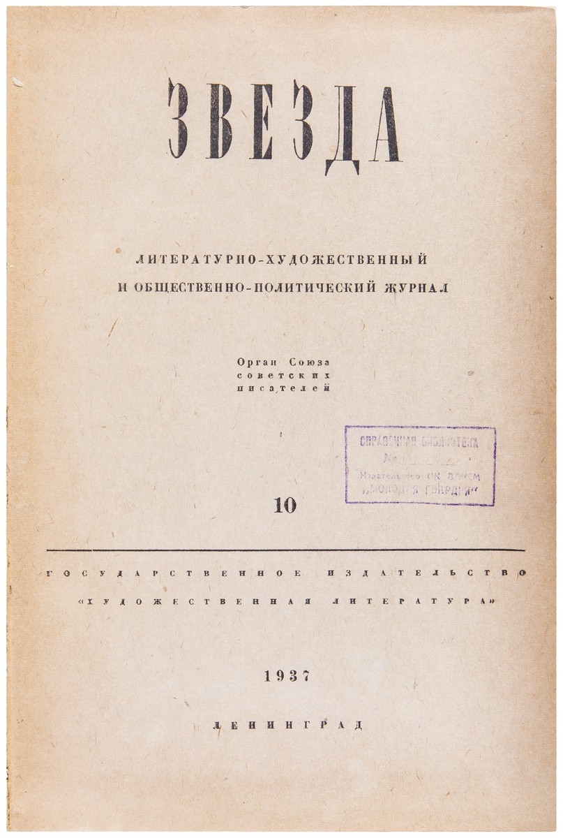 «Звезда» — ежемесячный литературный журнал, издаётся в Петрограде — Ленинграде — Санкт-Петербурге с января 1924 года. Выходил сначала 6 раз в год, с 1927 года выходит ежемесячно. В августе 1946 года журнал подвергся резкой критике, наиболее известный документ которой — постановление Оргбюро ЦК ВКП(б) «О журналах „Звезда“ и „Ленинград“», фактически изгнавшее из литературы Михаила Зощенко и Анну Ахматову.