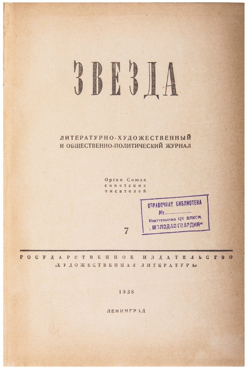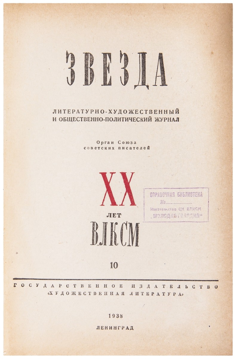 «Звезда» — ежемесячный литературный журнал, издаётся в Петрограде — Ленинграде — Санкт-Петербурге с января 1924 года. Выходил сначала 6 раз в год, с 1927 года выходит ежемесячно. В августе 1946 года журнал подвергся резкой критике, наиболее известный документ которой — постановление Оргбюро ЦК ВКП(б) «О журналах „Звезда“ и „Ленинград“», фактически изгнавшее из литературы Михаила Зощенко и Анну Ахматову.