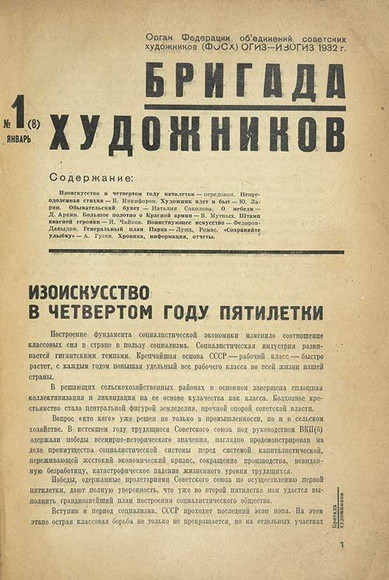 Черно-белые репродукции картин на отдельных листах мелованной бумаги. В издательской обложке. Надрывы обложки, обложка частично отходит от блока. Сохранность хорошая. Содержание номера: искусство – в технику, проблема революционного портрета в скульптуре, о чем говорят детские рисунки, техника живописи и живописные материалы и др. Журнал выходил в течение двух лет (1931-32), его оформителями были такие известные художники-авангардисты как А.М. Родченко, Эль Лисицкий, Г.Г. Клуцис, Д. Моор, бр. Стенберги и др."