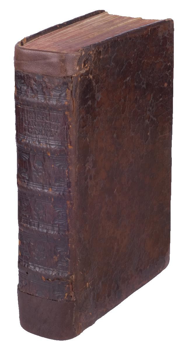 В коричневом цельнокожаном переплете эпохи. На корешке вытиснены название книги и виньетки в виде цветов. Форзацы из бумаги «под павлинье перо». Красные обрезы. Трещины по переплету, реставрация верхней и нижней частей корешка (кожа), следы от надписи орешковыми чернилами по верхнему полю тит. л. и странице с посвящением. Сохранность отличная.