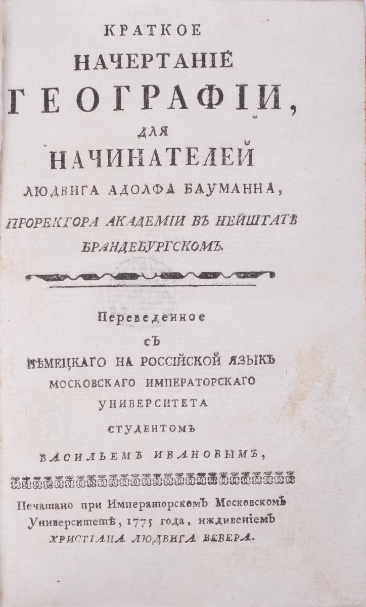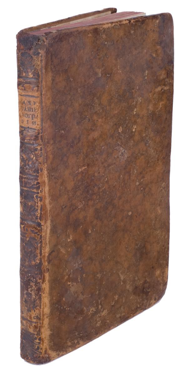 Гравированные заставка и концовка. В цельнокожаном переплете эпохи. На корешке вытиснены «потухшим» золотом виньетки в виде цветов и название книги. Форзацы из бумаги «под павлинье перо». Красные обрезы. Реставрация фрагмента верхней части корешка, утрата свободного листа нахзаца и 1 л. карт, следы от стертых надписей на тит. л. Экслибрис «Ex Libris Kurt Schweder». Сохранность хорошая.