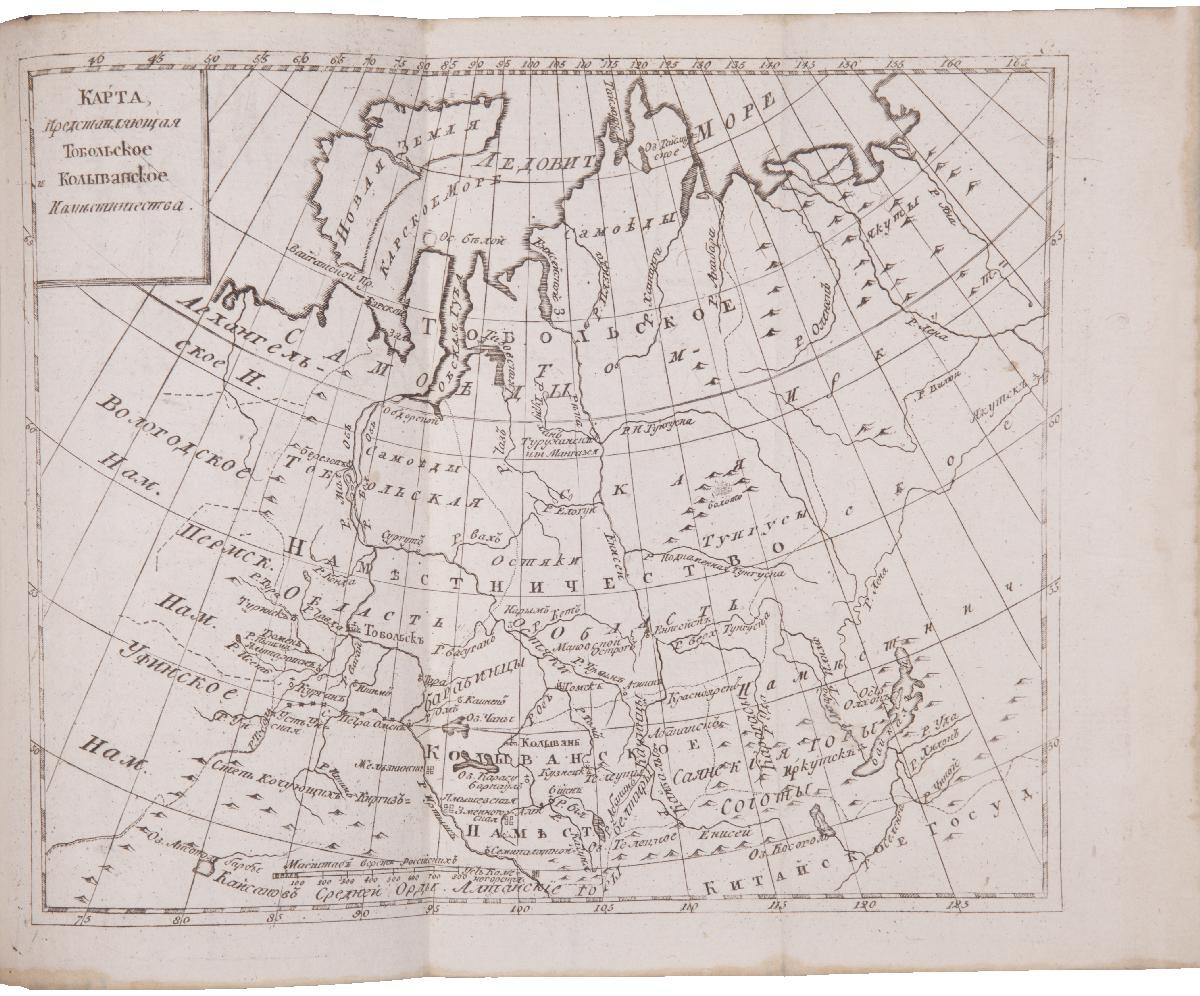 Девять раскладных гравированных карт Российской империи, отдельных ее губерний и наместничеств в конце книги. В коричневом цельнокожаном переплете эпохи. Потертости переплета. Экслибрис «Bibliotheca Tateviana» на форзаце. Сохранность отличная.