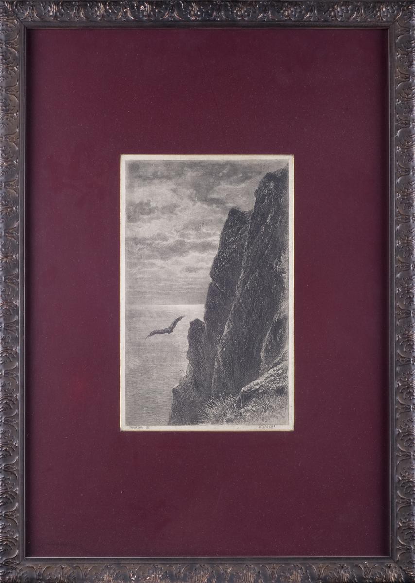 1885 г. Офорт, шелк, рама — дерево, паспарту оригинальное. Справа внизу выгравировано название «Гурзуфъ», слева - «Шишкинъ 85». 23х14 см.
