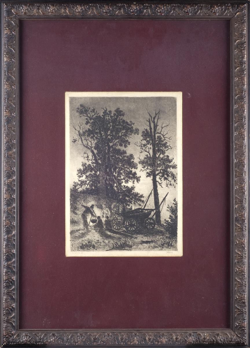 1886 г. офорт, шелк, рама — дерево, паспарту — бумага. Справа внизу выгравировано название «Ночь», слева - «Шишкин 86». 23х16 см.