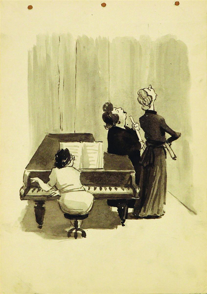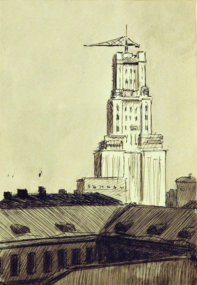 «Дуэт» -1956г. 24х19,7см.; «Высотка» - 1953г. 23х16,8см. Бумага, тушь.
