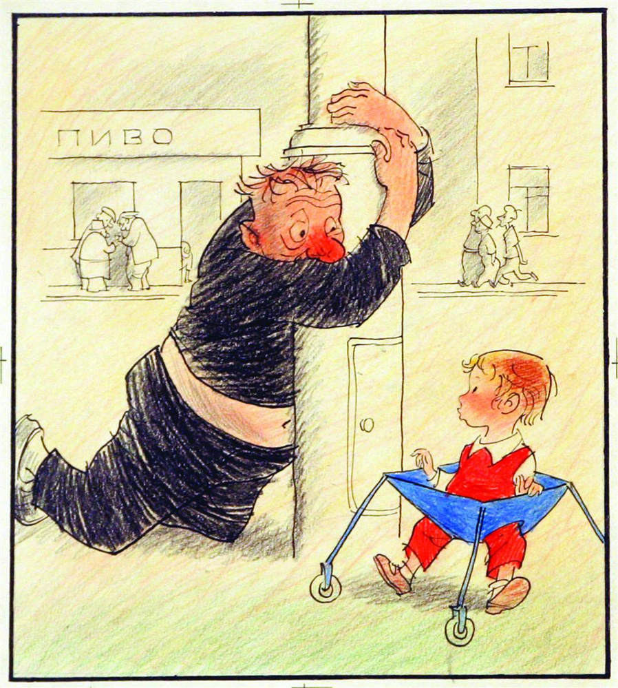 1967год. Бумага, тушь, пастель, цветной карандаш 30х27 см Евгений Борисович Щеглов (1927-1991), график, карикатурист. Заслуженный художник России. Е.Щеглов рисовал в журналах «Крокодил», «Здоровье», «Веселые картинки» и других. Иллюстрировал книги ведущих писателей-юмористов и сатириков. Оформил несколько спектаклей в московских театрах, работал для цирка, оформляя клоунские номера. С 1949 по 1991 г. участвовал на более чем ста художественных выставках. Произведения Евгения Щеглова находятся во многих музеях страны, опубликованы в его альбомах жанровых рисунков, в сборниках рисунков мастеров карикатуры, изданных в Москве и за рубежом, а также в отечественной и зарубежной периодической печати.