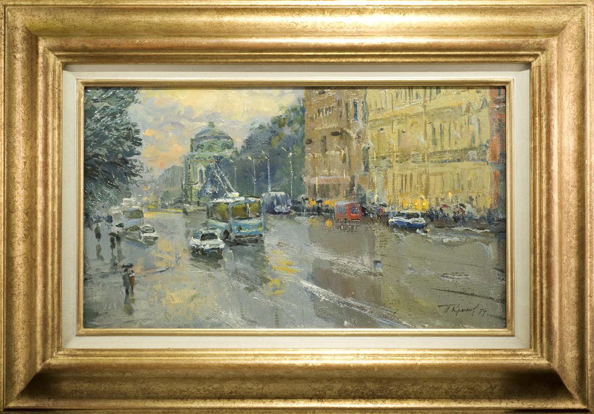 1974 год. Холст, масло. В правом нижнем углу картины имеется подпись автора»П.Крылов,74.» 27х46 см. Порфирий Никитич Крылов (1902 - 1990) — советский живописец и график, член творческого коллектива Кукрыниксы. Народный художник СССР (1958), действительный член Академии художеств СССР (1947). Лауреат Ленинской (1965), пяти Сталинских (1942, 1947, 1949, 1950, 1951), Государственной премии СССР (1975). Герой Социалистического Труда (1972). Произведения П. Н. Крылова экспонировались на многих художественных выставках в России и за рубежом. Они находятся в собраниях Государственной Третьяковской Галереи, Государственного Русского Музея, Художественного музея имени П. Н. Крылова в Туле, в галерее Уффицы во Флоренции, и других зарубежных музеях и частных коллекциях.