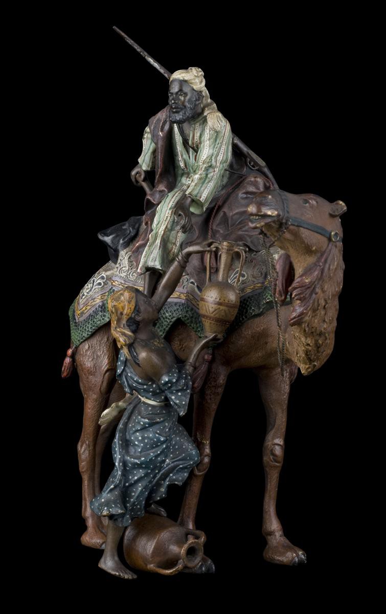 Австрия, Вена, фабрика Бергмана (Franz Xavier Bergman), кон.XIX нач.XX вв. Бронза, литье, чеканка, роспись красками, монтировка. Клейма: литера "В" в кувшине, "GESCHUTZT"(" авторское право"или "зарегистрировано"), номер "4639". Высота - 20,5см., длина - 1